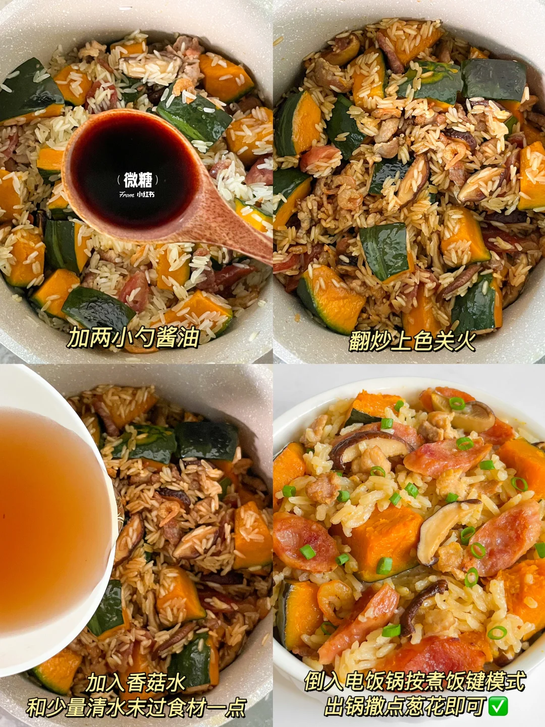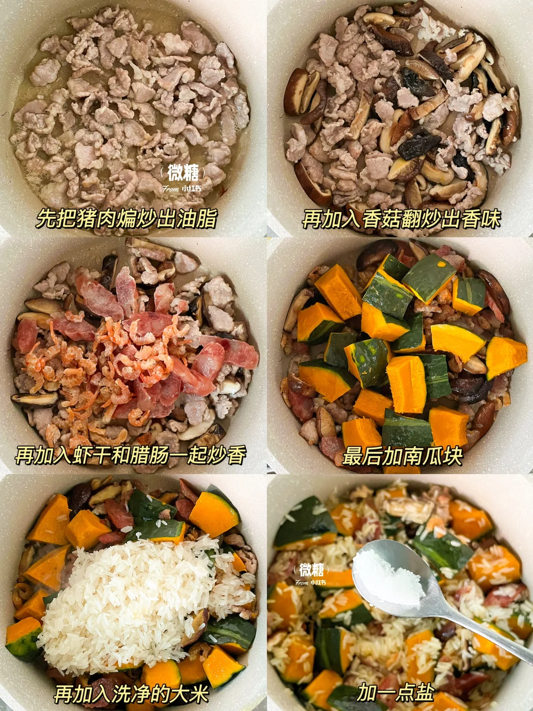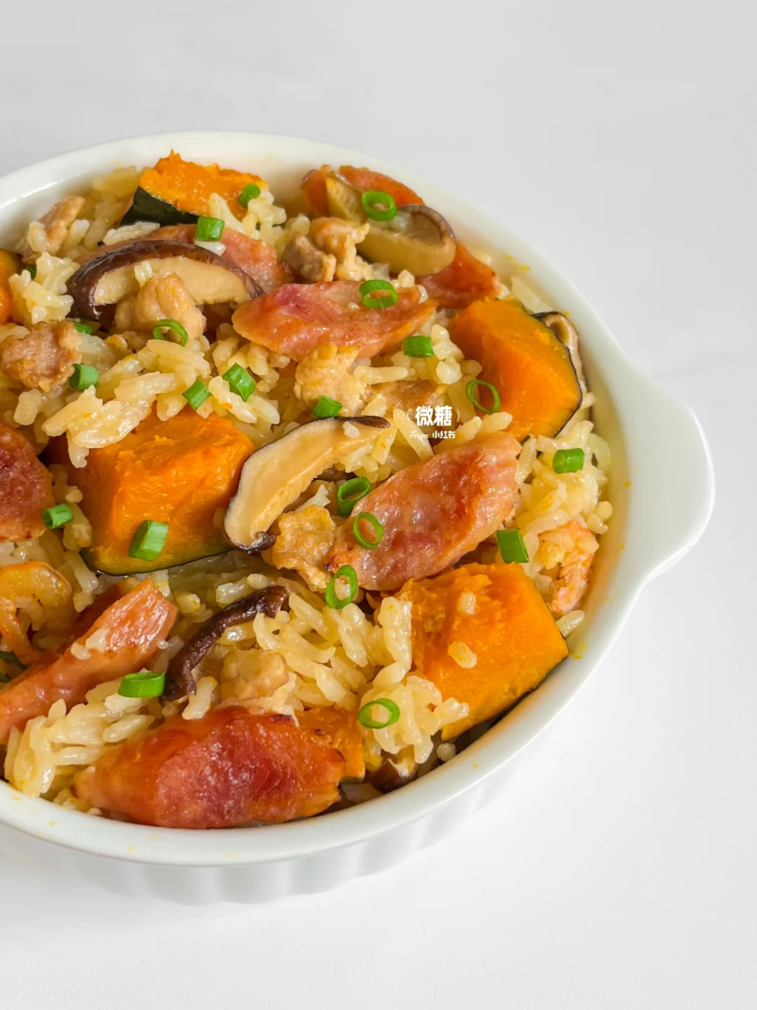 今天分享这款好吃到全家都夸的南瓜焖饭💥一揭锅满屋飘香~真的香迷糊了🤩做法简单到不得了,一看就会,味道真的超级超级赞‼️米饭吸满了肉香和腊肠的咸甜,南瓜的香甜~记得多焖点米饭,不然真的不够吃啊😋