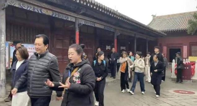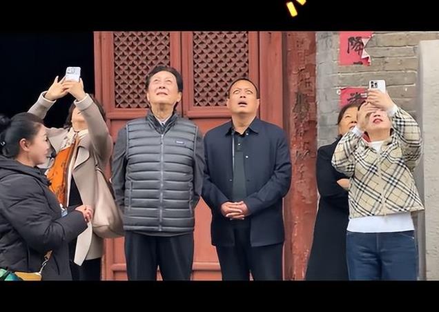 观赏寺庙壁画时,唐国强不时与身旁之人低语,其声不复往昔之洪亮,而是略显沙哑。