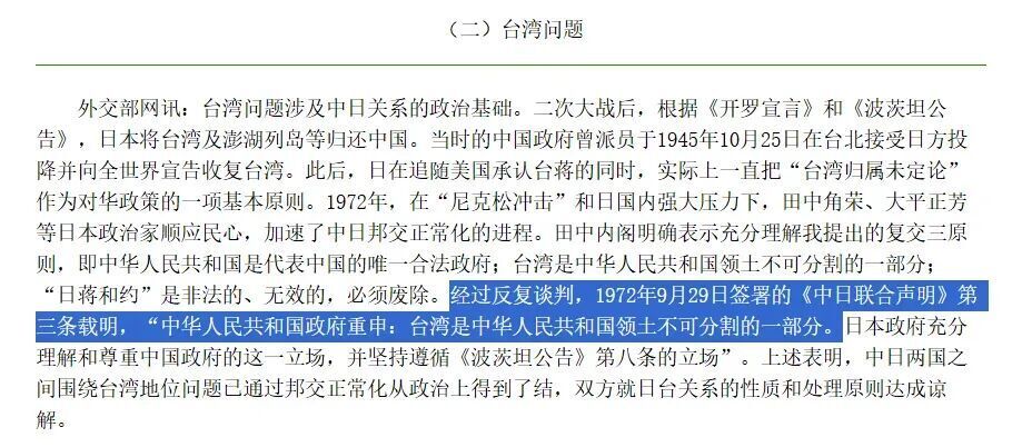 可《中日联合声明》明确指出:台湾地区是中国领土不可分割的一部分。