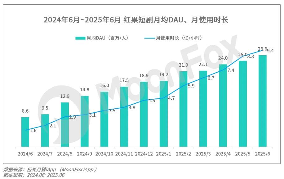与用户规模一同膨胀的,是用户粘性。2025年3月其用户月均使用总时长就超过了9.4亿小时,人均单日使用时长接近1.5小时,而到了8月,其单月使用总时长更是飙升至11.1亿小时。