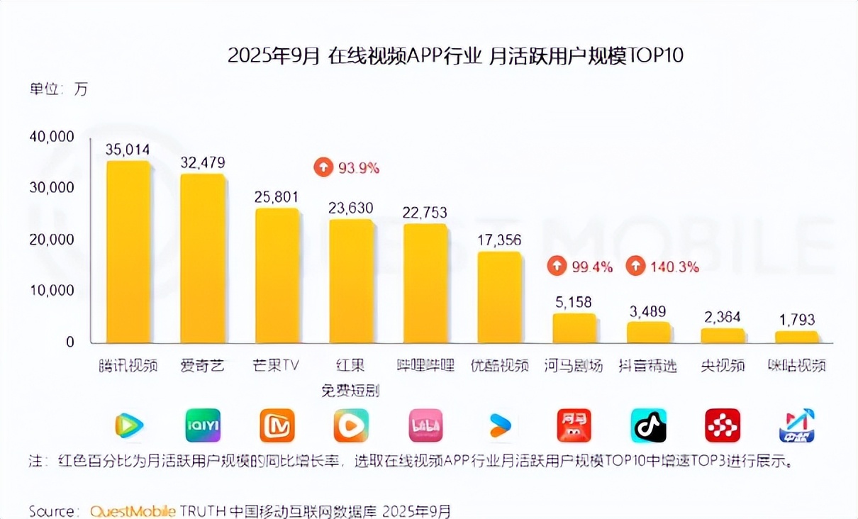 更让长视频巨头们感到寒意的是另一组数据,QuestMobile数据显示,截至2025年9月在线视频APP行业月活跃用户(MAU)规模为7.99亿。