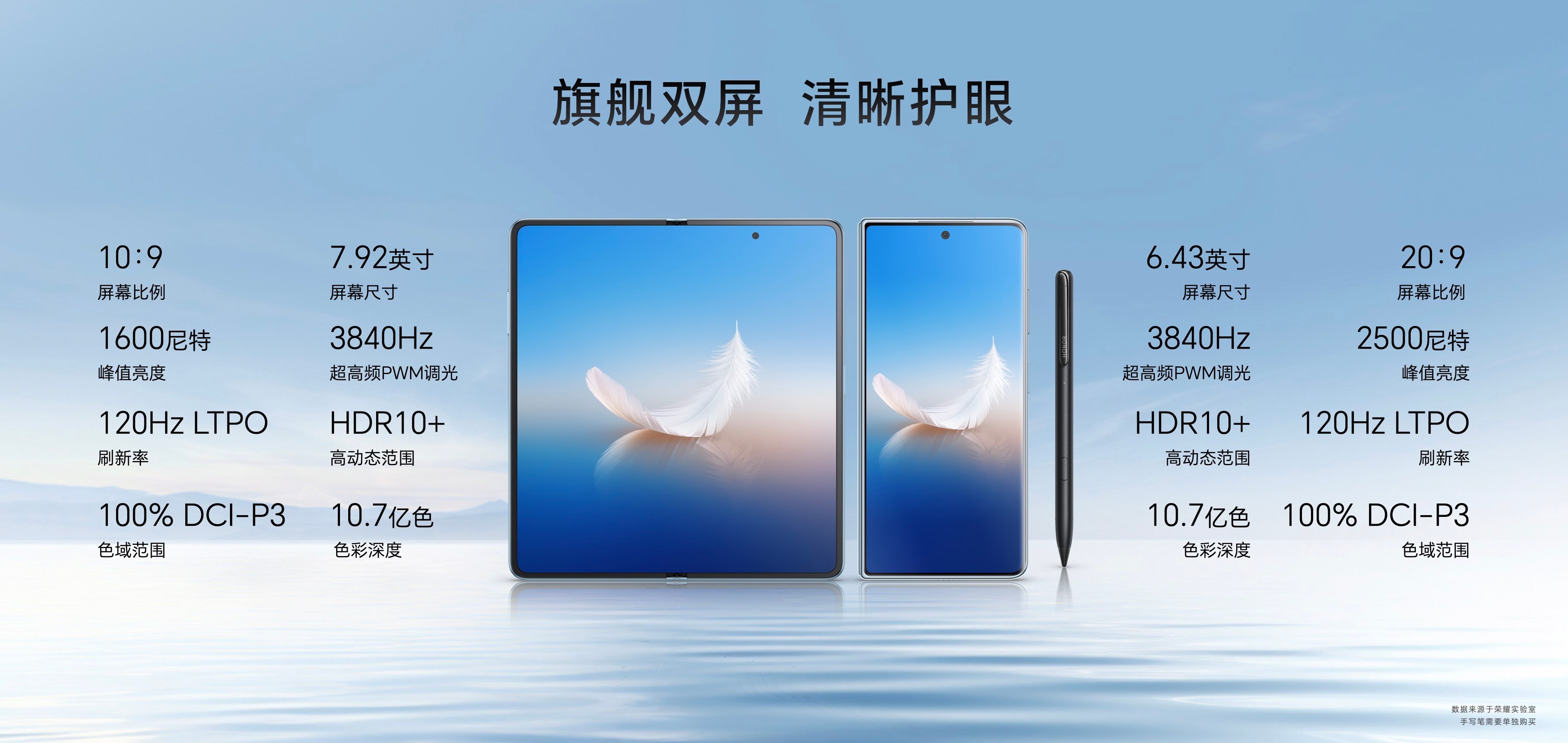荣耀Magic Vs2三个颜色,冰川蓝、珊瑚紫、绒黑色,