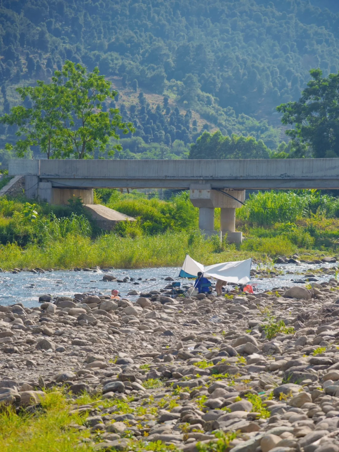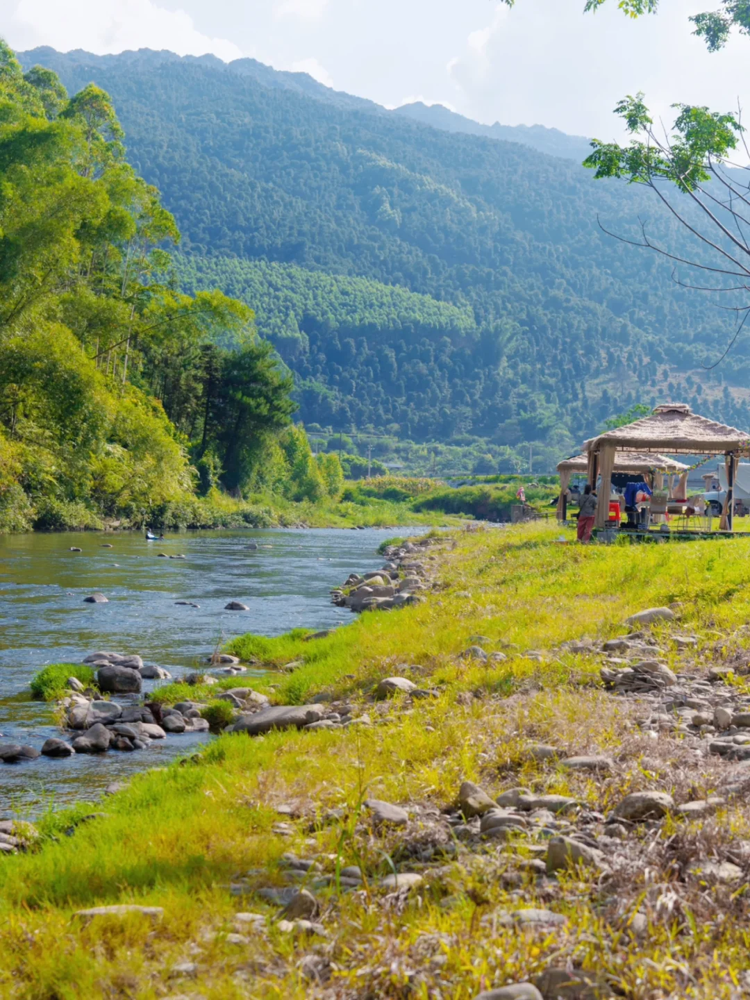 2️⃣营地就在河滩边,水质还行,人也不是特别多。浅滩小朋友玩水绝绝子。小孩玩水请大人一定看管好。出发前看好天气,雨天去的话可能比较危险,水浑也没那么好玩