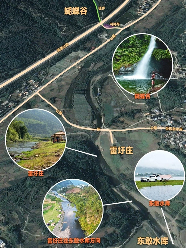 4️⃣附近可玩:东敢水库、蝴蝶谷很近就在边上。如果觉得雷圩庄水小不够尽兴,推荐结合蝴蝶谷泡潭,蝴蝶谷玩水是免费的哦
