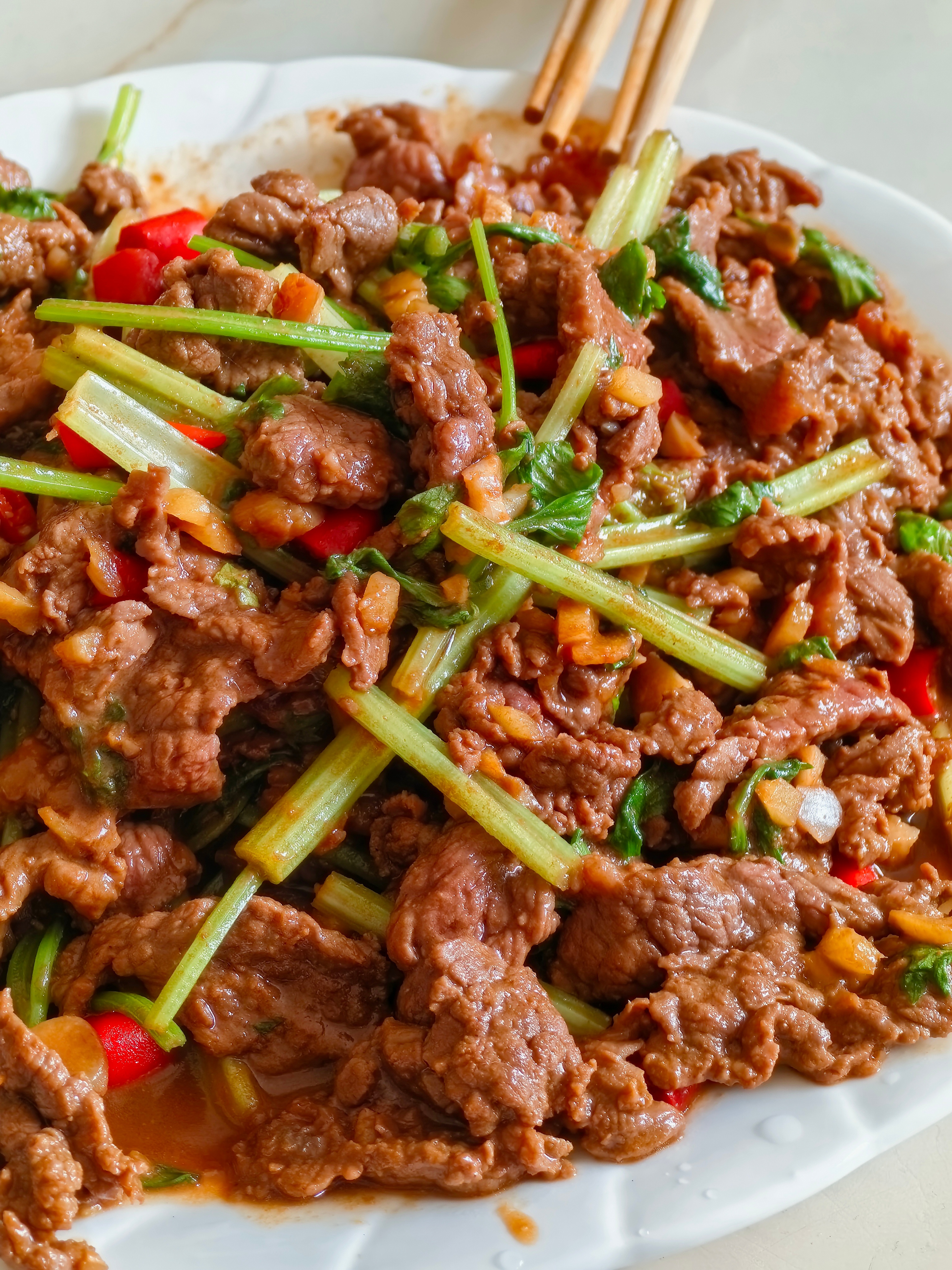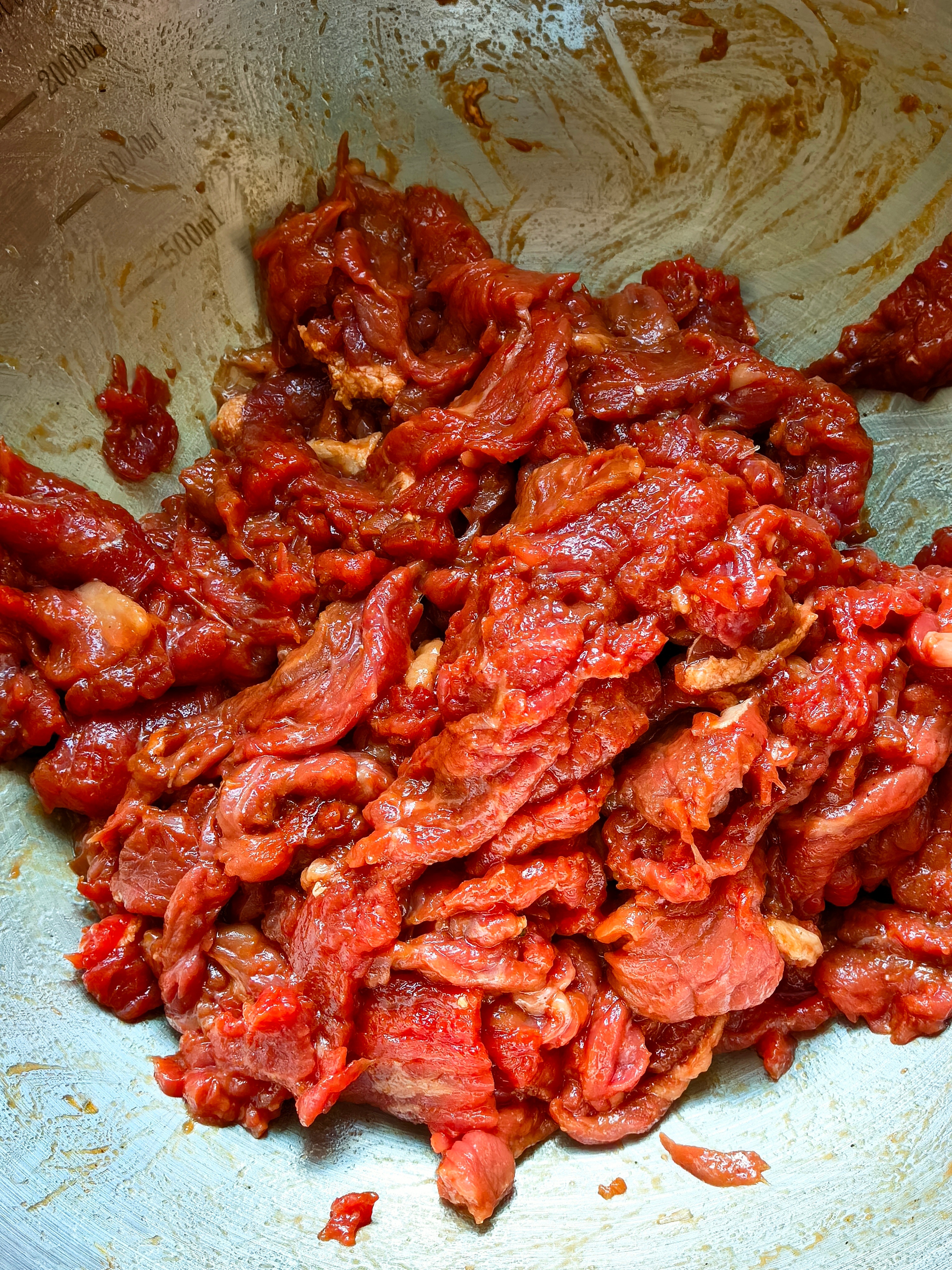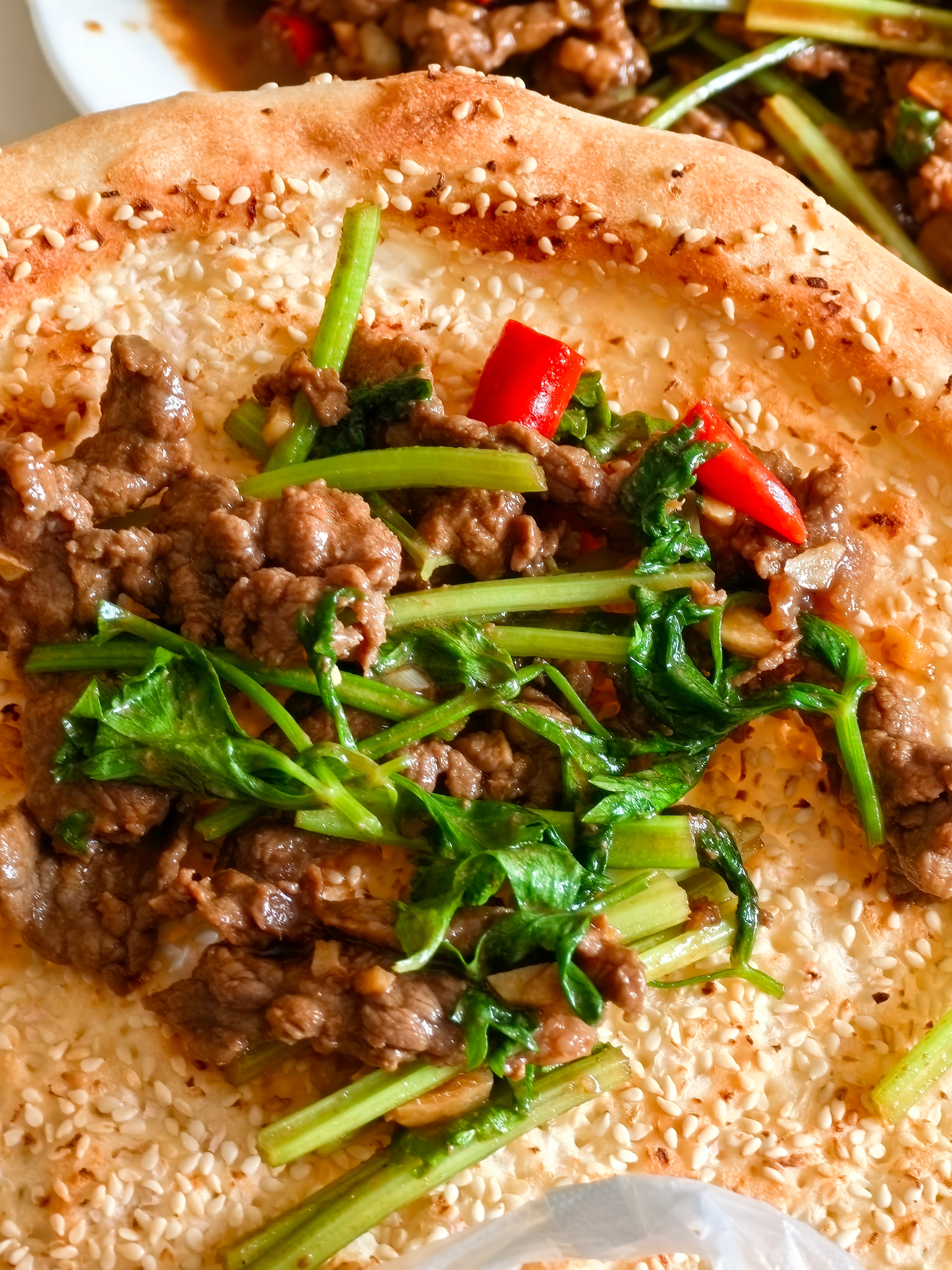 炒黄牛肉配新疆烤馕,非常下饭[哈哈]