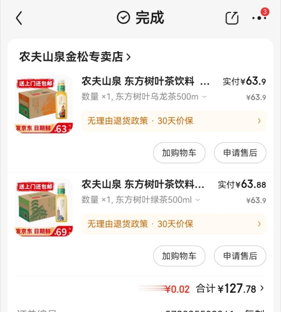我每次在某东买的东方树叶,64元15瓶,折合4.26元每瓶。