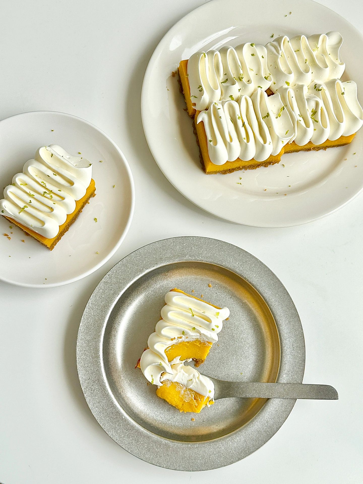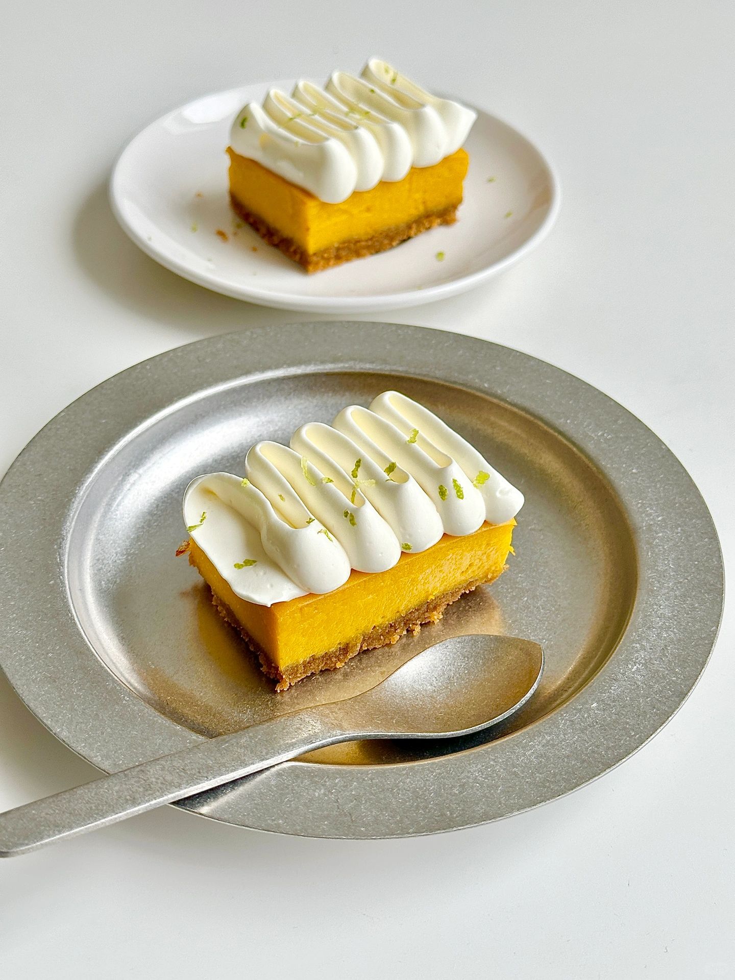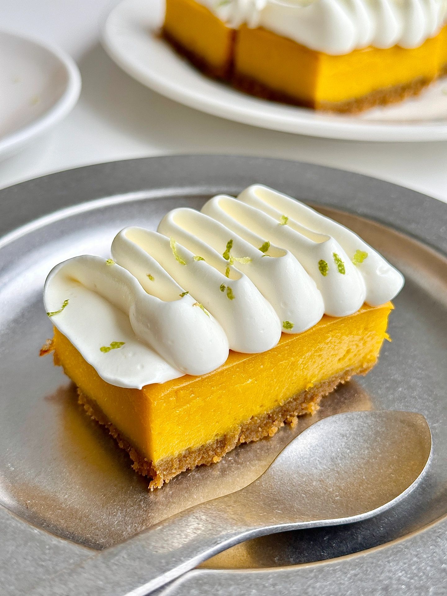 香甜细腻软糯的南瓜挞 秋日☀️的下午茶 安排它再合适不过了 ✔️食材 消化饼干90g 融化的黄油50g 去皮南瓜300g 全蛋1个 牛奶65g 糖25g 玉米淀粉10g ✔️做法 -饼干压碎➕融化的黄油拌匀,铺入模具并压实冰箱冷藏备用 -南瓜蒸熟压成泥,依次加入全蛋、牛奶、糖、玉米淀粉搅拌均匀倒入模具,烤箱140°,烤40分钟出炉放凉 -打发一点奶油挤在南瓜挞上面,再撒点柠檬皮屑就完成了