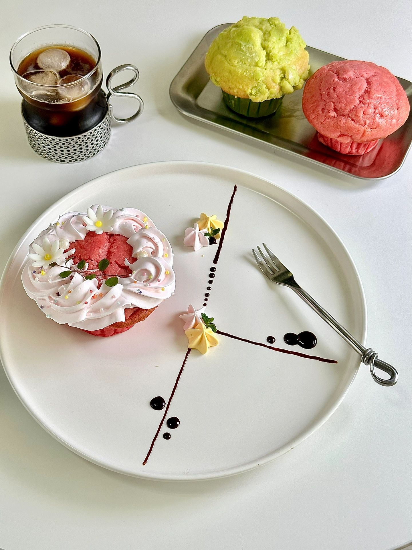 最近库迪出了一款太子新粮麦芬 看起来好好吃🫣 和闺蜜约在家里下午茶☕️想着试吃一下 简直心有灵犀 她带来了库迪新出的麦芬桃桃粉云和蜜意云朵 据说天天售罄,她蹲了好几天才买到 吃起来口感超赞…!! 外皮酥脆,里面松软香甜又不腻! 我实在是喜欢这个粉粉的颜色 于是就摆了个高级感的甜品盘哈哈🤭 💓食材 麦芬 巧克力酱🫗 淡奶油 绿植🍃 糖珠 草莓粉 🔎做法参考P5️⃣ 简简单单的就可以把1.9的麦芬做出79的样子