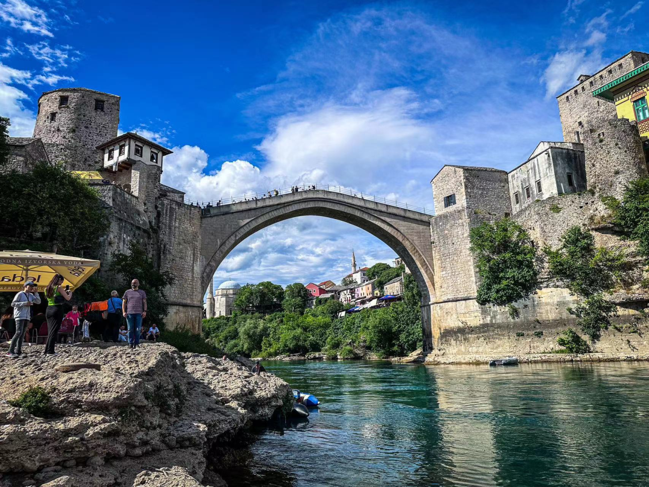 上午自由活动,下午集合前往莫斯塔尔。莫斯塔尔有中世纪罗马建筑古迹,城南的波奇泰尔以伊斯兰建筑闻名,莫斯塔尔以一座古老石桥著称。老桥是一座曾有427年历史的石拱桥,横跨流经莫斯塔尔老城市中心的奈莱特瓦河,桥宽4.55米,桥长27.34,桥拱最高端距水面20米,桥两端各有一个石砌桥头堡。老石桥充分展现了16世纪波斯尼亚的古朴风情和艺术风格,被联合国教科文组织列为世界文化遗产。