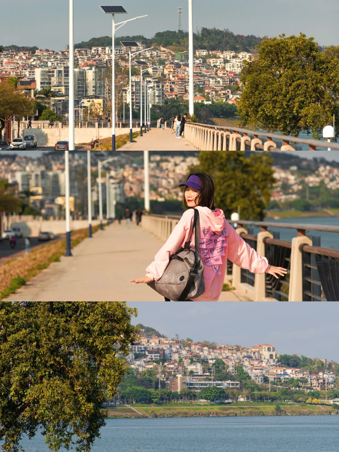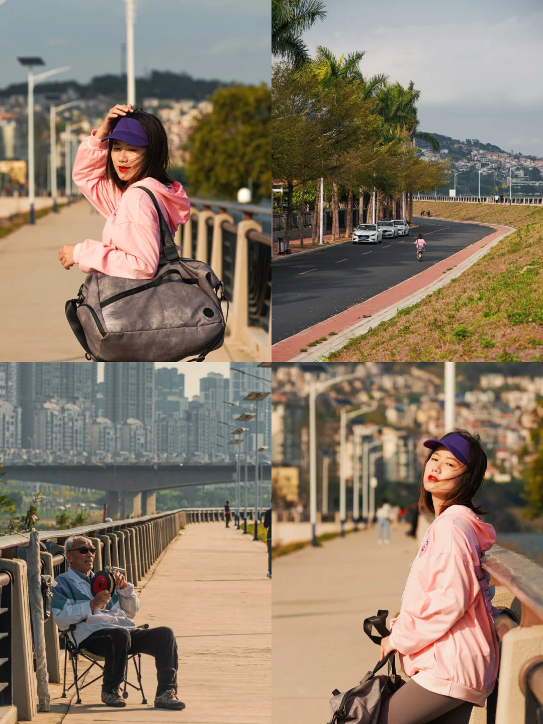 从飞盘场转过来,背着很能装的VENQUE范克健身包,有干湿分离区域方便放鞋子,颜值高面料好,拍照好看毫无违和感。大概是下午4点左右到的,阳光贼好温柔又浪漫。远处别墅的红色的屋顶被太阳的照得格外好看,海滨城市感十足
