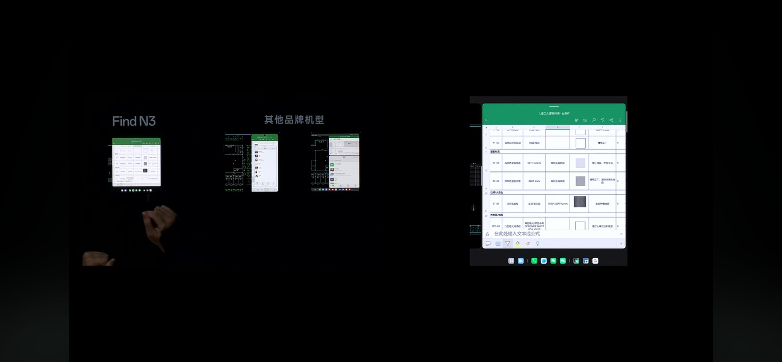 OPPO Find N3这次摒弃前代产品“矮胖”的屏幕比例,回到主流折叠屏比例行列,并且充分对比安卓折叠屏,分屏逻辑的不足和限制,充分学习了MacOS 台前调度、程序启动Dock栏的思路,把更高效的大屏切换或者分屏显示,带到了折叠屏上,这个新形态和一指切换体验非常亮眼,比传统安卓的分屏效率高非常多!