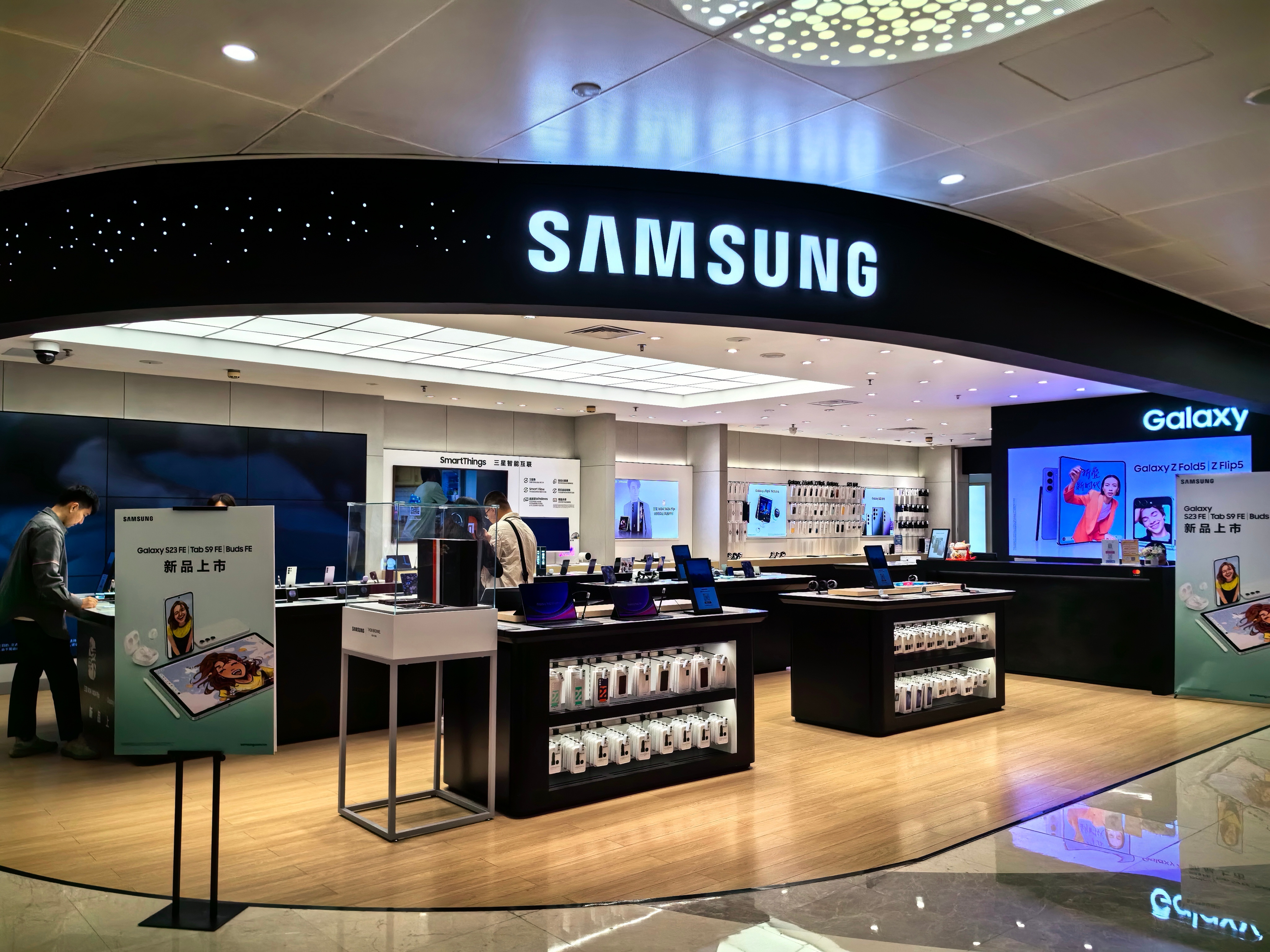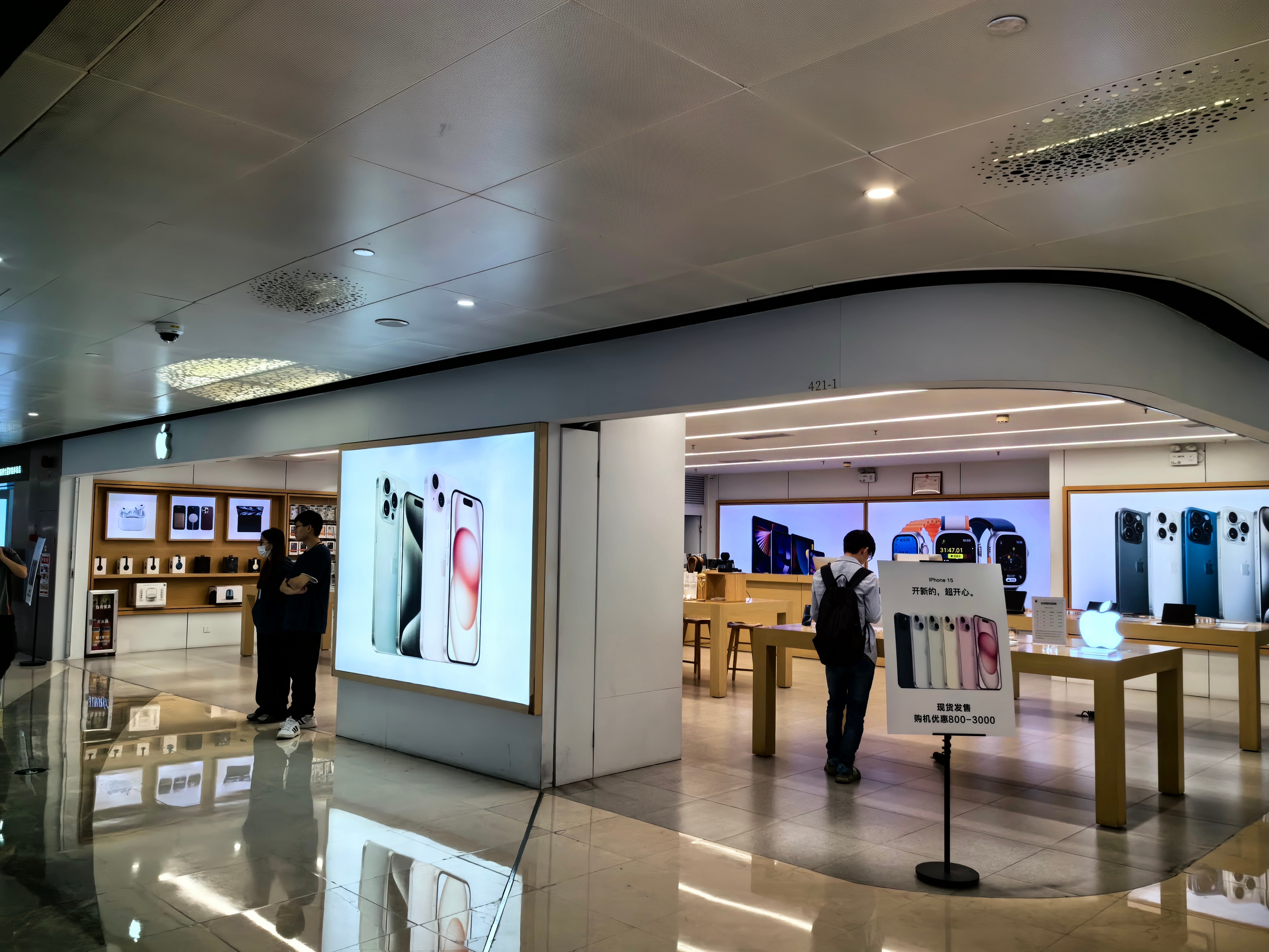 在天河区天河广场转了转,这边4楼数码区,大周末刚上午就已经人来人往了。这个商场里面的手机品牌很全也挺多的,这几个手机展台就像商场里黄金首饰或者化妆品的岛柜,你挨着我,我看着你,其实目前国内前7市场份额的品牌,基本上除了三星势弱,其他品牌不管再怎么也不可能做到一家独大甚至通吃,大家都是“各有品牌的基本盘”。