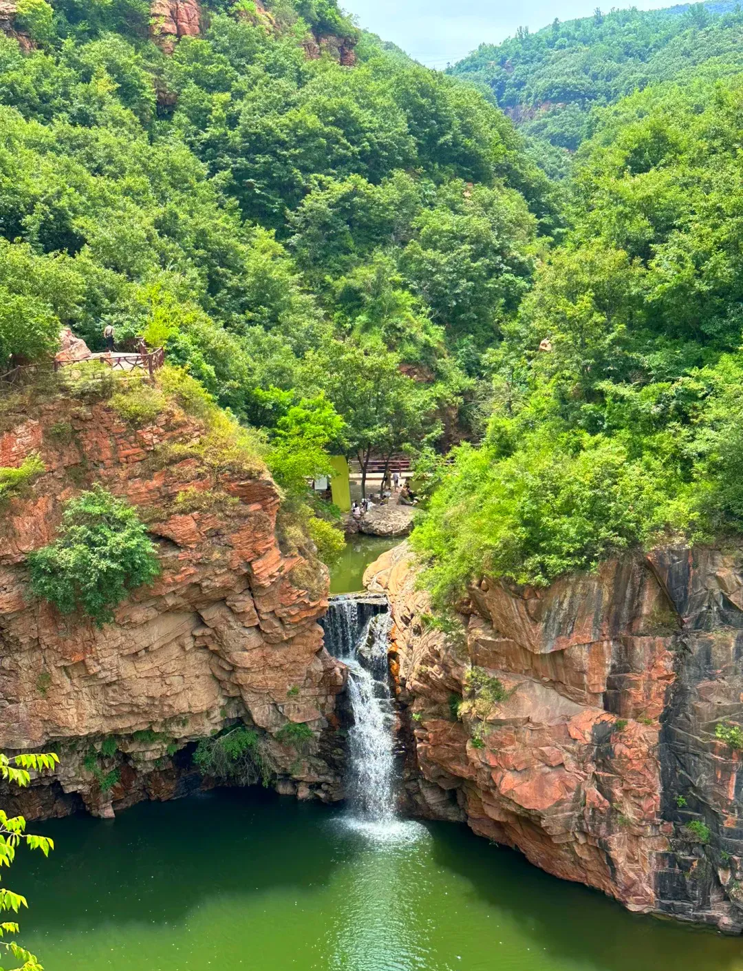 郑州出发1小时,我找到了夏日避暑天花板,这里应该是距离郑州市最近、落差最长的红色砂岩峡谷了吧,景色非常壮观,而是夏天的伏羲山真的好凉快呀!