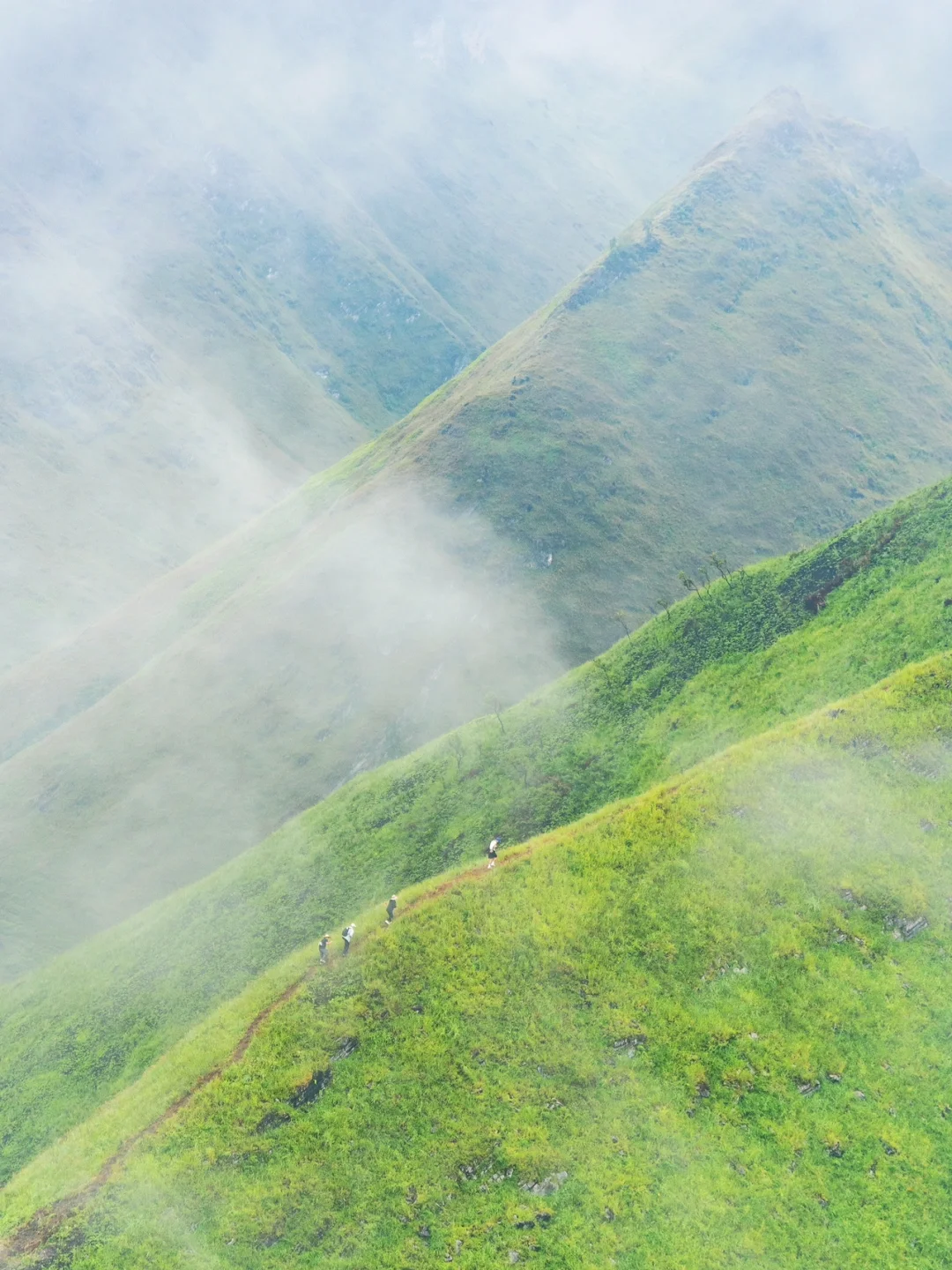 3️⃣雨天的剑龙山有别一样的体验和美感,猜测性和好奇性很多,当风吹过时隐时现的山体,露出绵延的曲线,惊叹“哦原来是这样的,太美了吧”“快看水库在那,好美”…