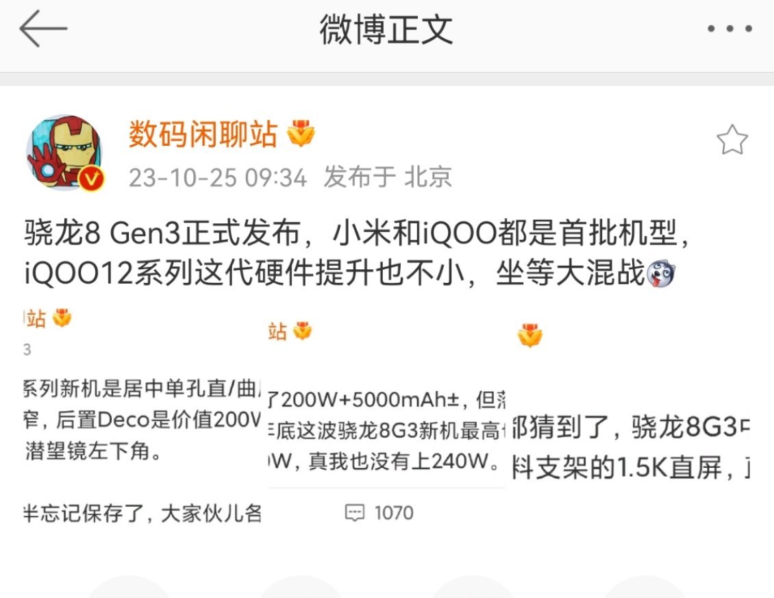 iQOO 12系列11月7日发布会?硬件提升不少,椭圆后摄外观重新设计,取消塑料