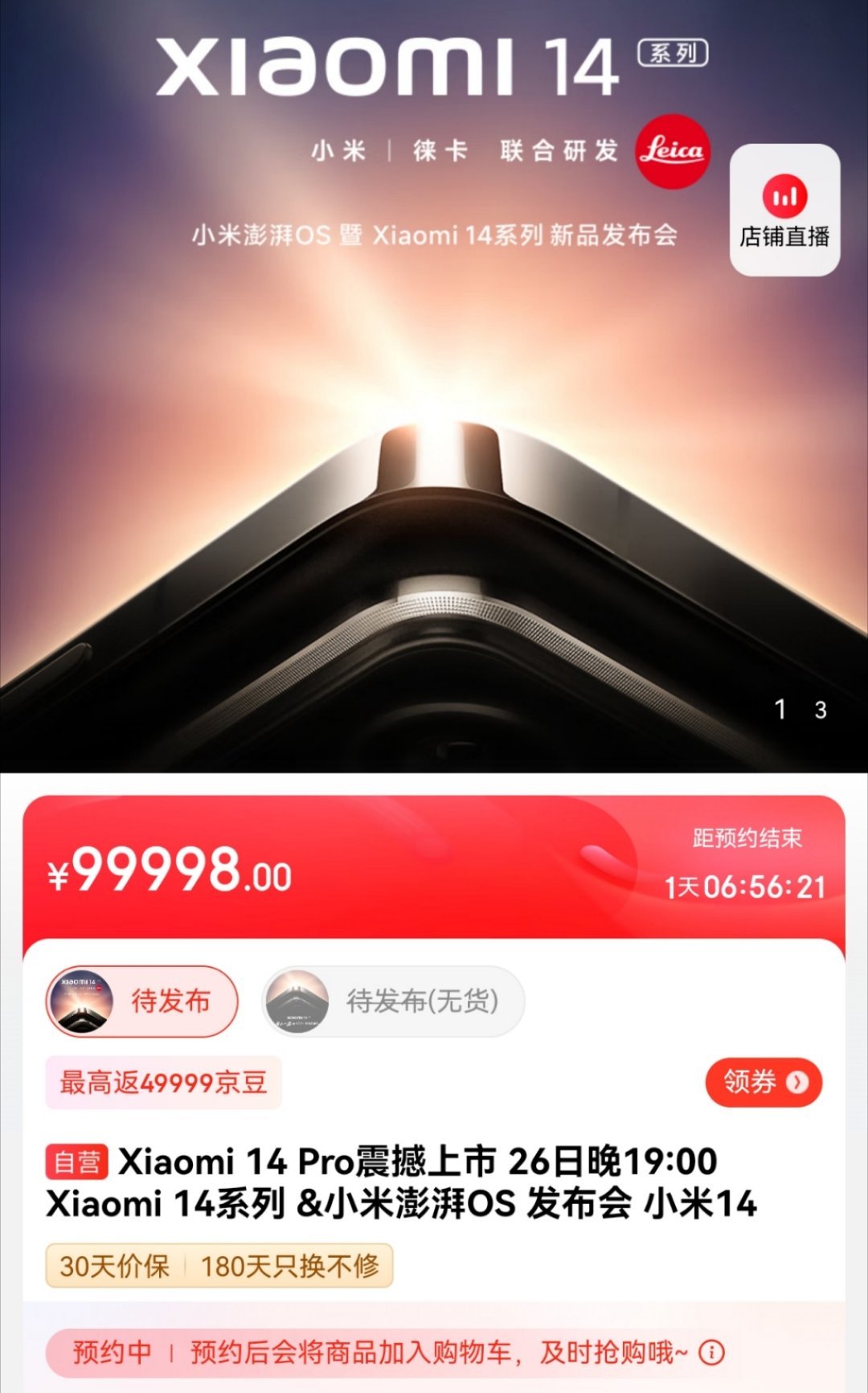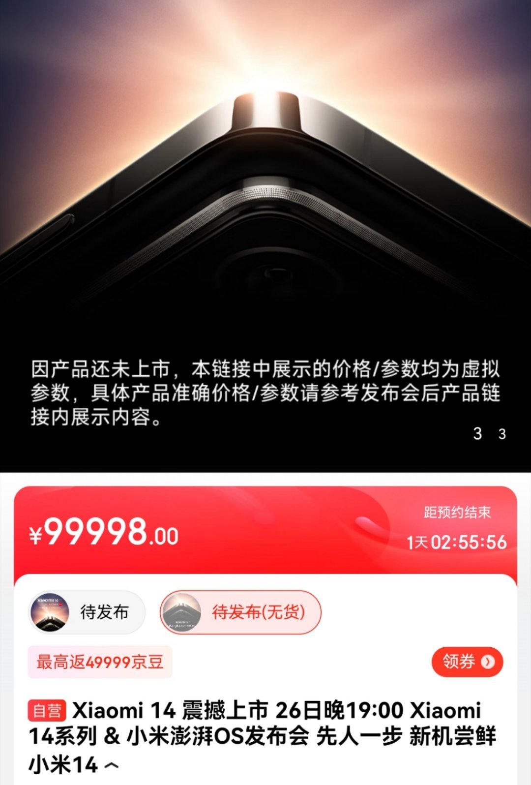 小米14系列推出「先人一步」尝鲜计划,10月26 日发布会后,小米14和14 Pro各限量1000 台优先发货。