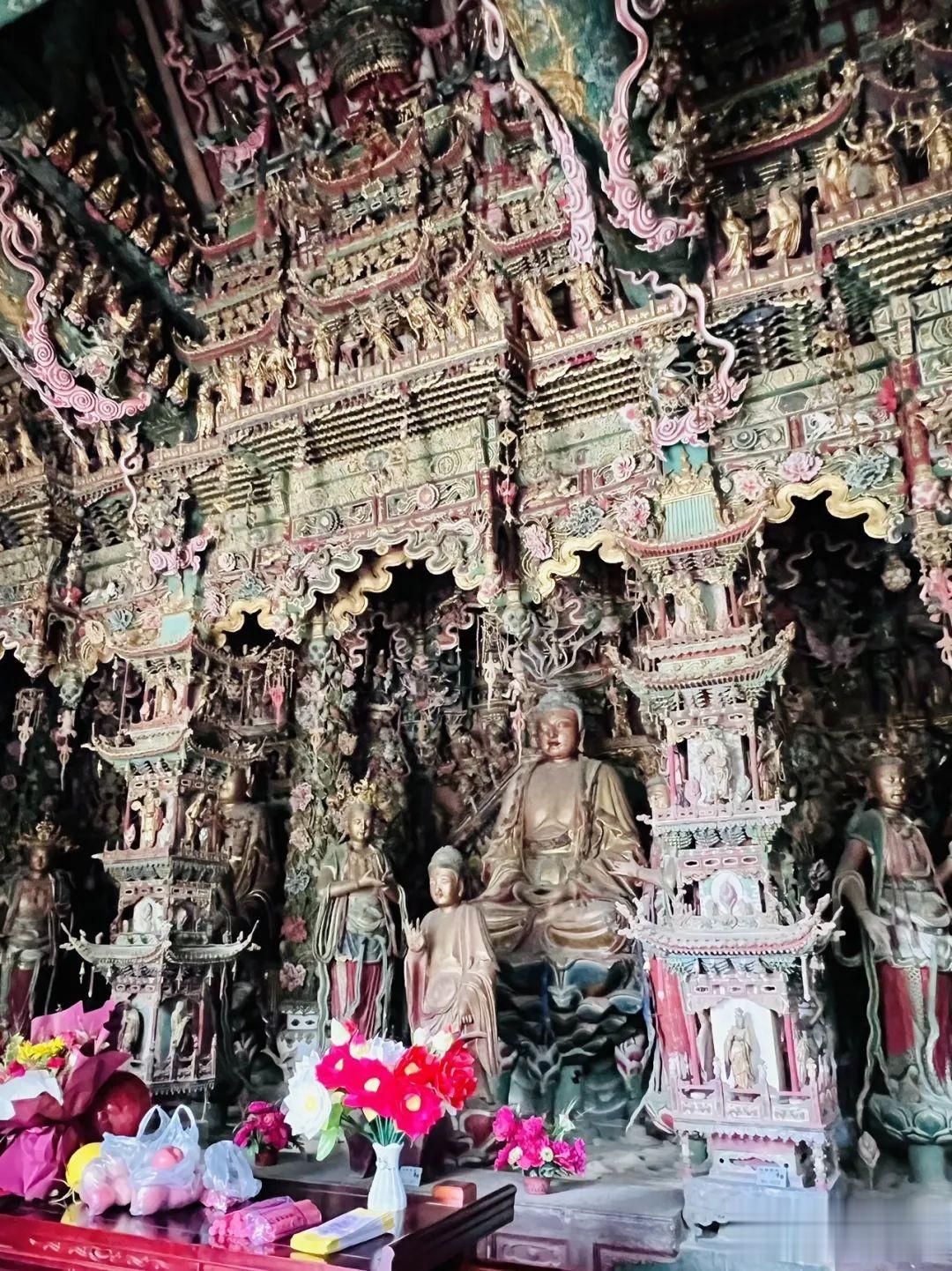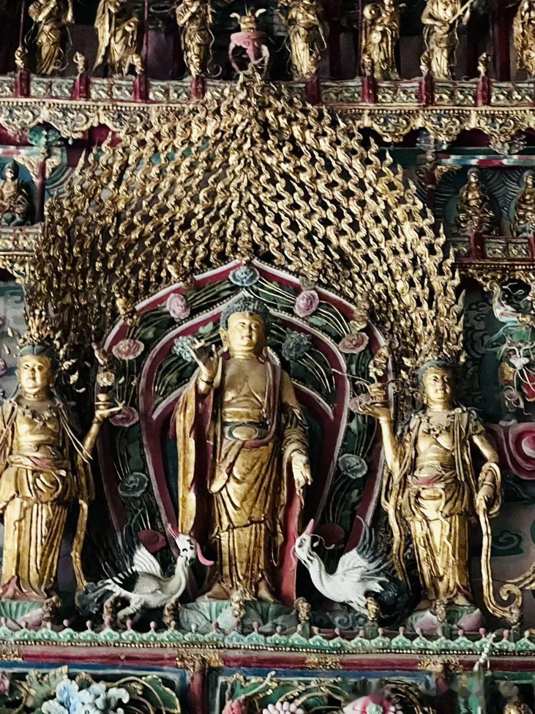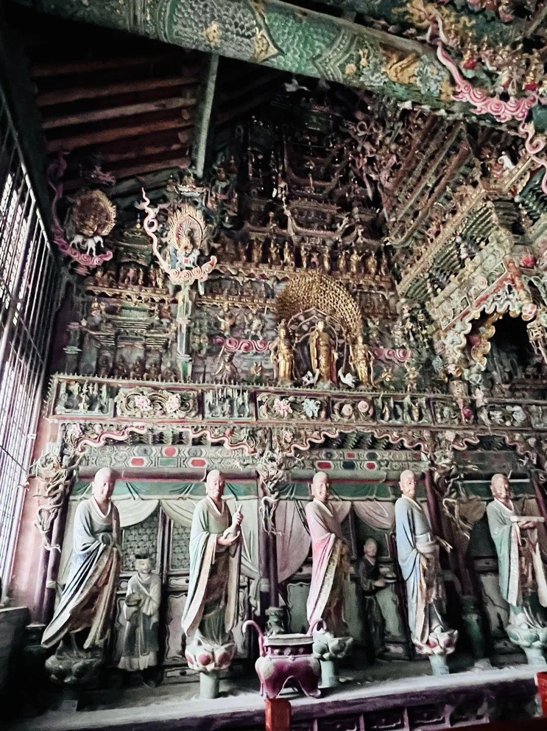 山西隰县,神佛满天小西天 小西天是一座佛教禅宗寺院,由明代东明禅师创建于明崇祯二年。大雄宝殿内的彩绘悬塑是小西天的精华,包括五个相互通联的佛龛和一系列佛教人物放事。这些雕塑人物体态造型各有变化,衣饰线条流畅而有韵律,色泽鲜艳,身体比例适度,肌肉丰满柔润,动作谐调大方,面部表情富于变化,栩栩如生,真可谓神形兼备。整体设计布局严谨,殿内近2000尊塑像绝大部分采用了贴金,且人物均有约15°的前倾,使殿堂几乎无尘,是人类泥塑的巅峰,是无法超越无可比拟的高超技艺。