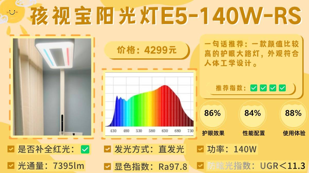 护眼大路灯排行榜第四名:孩视宝阳光灯E5-140W-RS