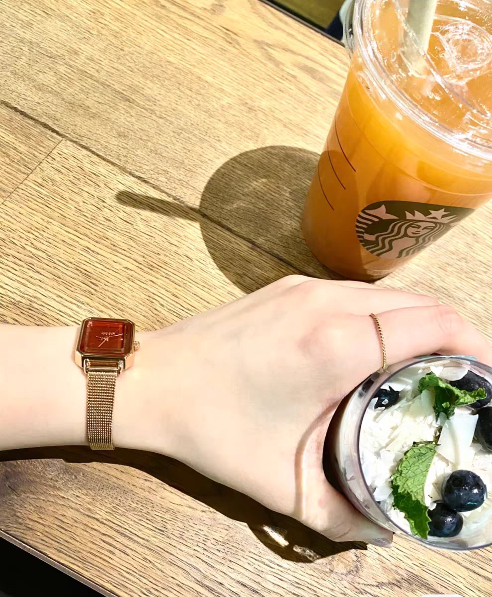 ♛手表🎀也是提升气质特别需要的配饰,囤妹本人是比较喜欢金属表带+小方表的,首推的话有Lola Rose家方糖小绿表🫧,这款和休闲装适配度超高,清爽满分又在绿玛瑙表盘与金银相间表带中碰撞出小精致。在者就是黑金小方表🫧酷感十足,配色超吸睛,干练中透露时髦腔调,随性自由感拉满啦。这款的话价格有点小贵的。