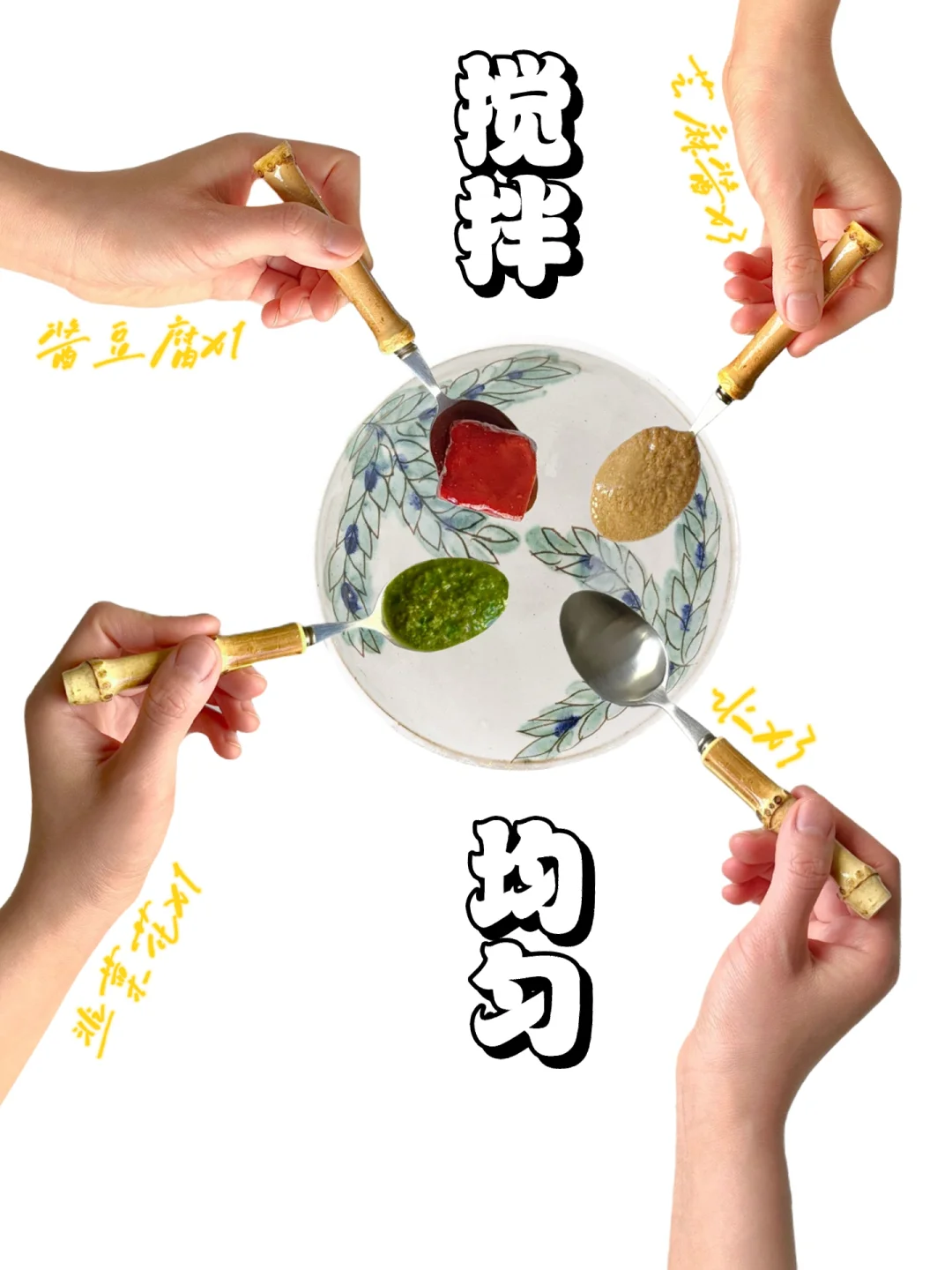 3⃣️酱豆腐、韭菜花和芝麻酱加水搅拌均匀至无颗粒