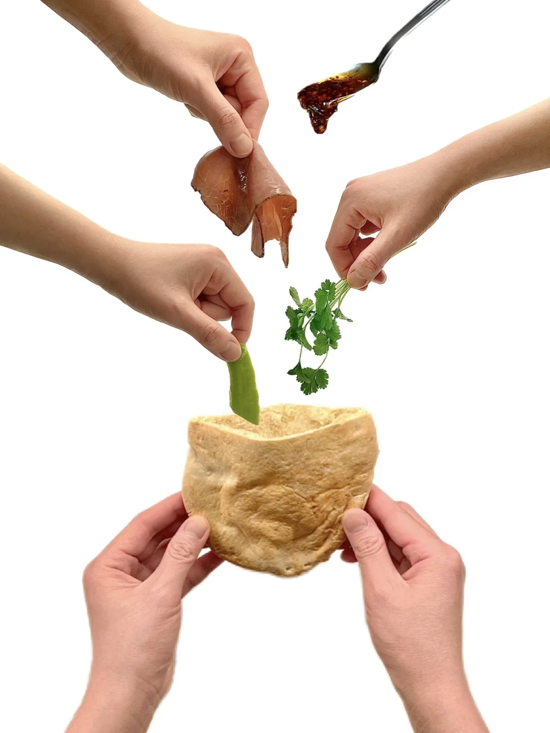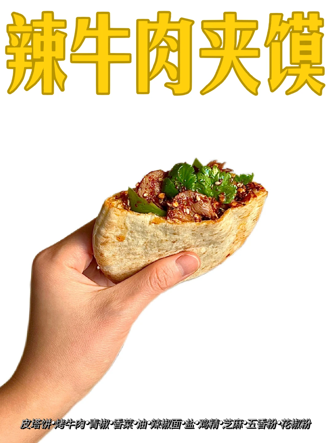 香香辣辣!好吃又简单~ 👉补充 Pita加热至膨胀即🉑️ 烤箱、平底锅、烤面包机都🉑️ 👉建议 用开水冲个紫菜汤配着馍一起更美~ 开水紫菜汤:紫菜、虾皮、葱花、味精、盐、香油、醋(可选项)