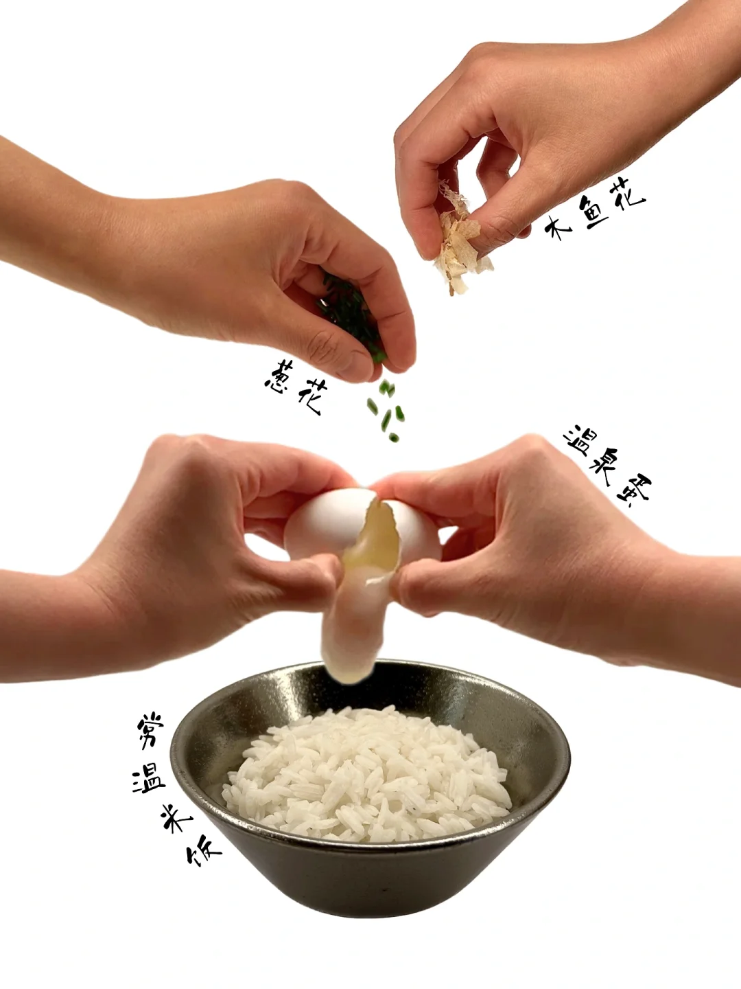 木鱼花搭配日式酱油 伴随蛋液包裹的饭粒 口感顺滑 味道鲜甜咸香 真的很难不爱! 👉Tips 米饭🉐️常温冷饭 蛋🉐️用🉑️生食的 酱油🉑️根据口味适量添加 不吃葱🉑️不加 没有木鱼花放点海苔也行 👉温泉蛋 蛋白凝固但不定型 呈白色果冻状 蛋黄呈流动状 口感为入口即化 👉个人最爱 不加米饭 单独作为一道小菜 👉注意哈 图中的蛋是从冰箱拿出来直接用的 常温蛋时间会有差异 需缩减加热时间
