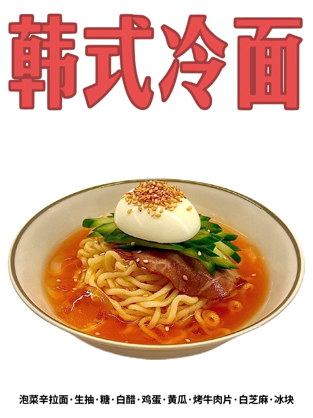 韩网流行的用辛拉面做韩式冷面 以身试毒却发现意外好吃!! 面条过冷水后口感劲道爽滑 吃起来就是冰冰凉凉的冷面平替 夏季食谱“墙裂”推荐! 👉建议 白醋🉑️用苹果醋替换 量按口味添加 没冰块🉑️将汤放冰箱冷藏后再食用 🉐️冰冰凉凉的才好吃 芝麻加不加都🉑️(主要是装饰) 调味比例🉑️按个人口味调整 ⚠️Tips 调配冷面汤时热水先少加一点 如果味道重了🉑️额外加水或冰稀释