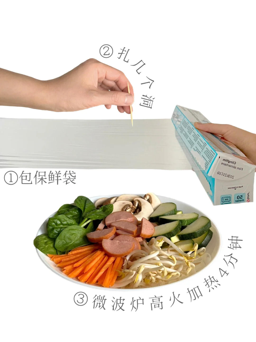 有剩饭就这么拌!不输外卖! 👉仅供参考 🥚微波炉煎蛋我用的360w加热50秒 🥬微波炉烹蔬菜用的900w加热4分钟 具体时间还需根据食材品种和量来定 👉注意 我选用的食材在瑞典都是🉑️生吃的 不可生食的食材🙅♀️不建议微波炉烹饪 保鲜膜务必🉐️选微波炉可用的 👉Tips 酱料比例🉑️按口味调整
