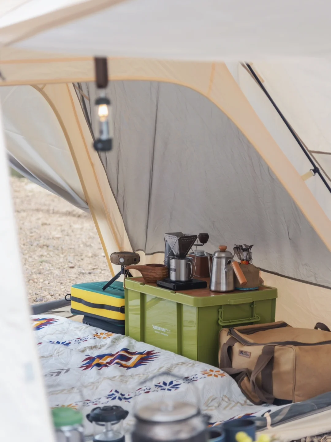 ✅一帐两用,白天开门用作前厅,晚上门帘拉上变成过夜帐篷,休闲休息空间都能满足,而且私密性很好~
