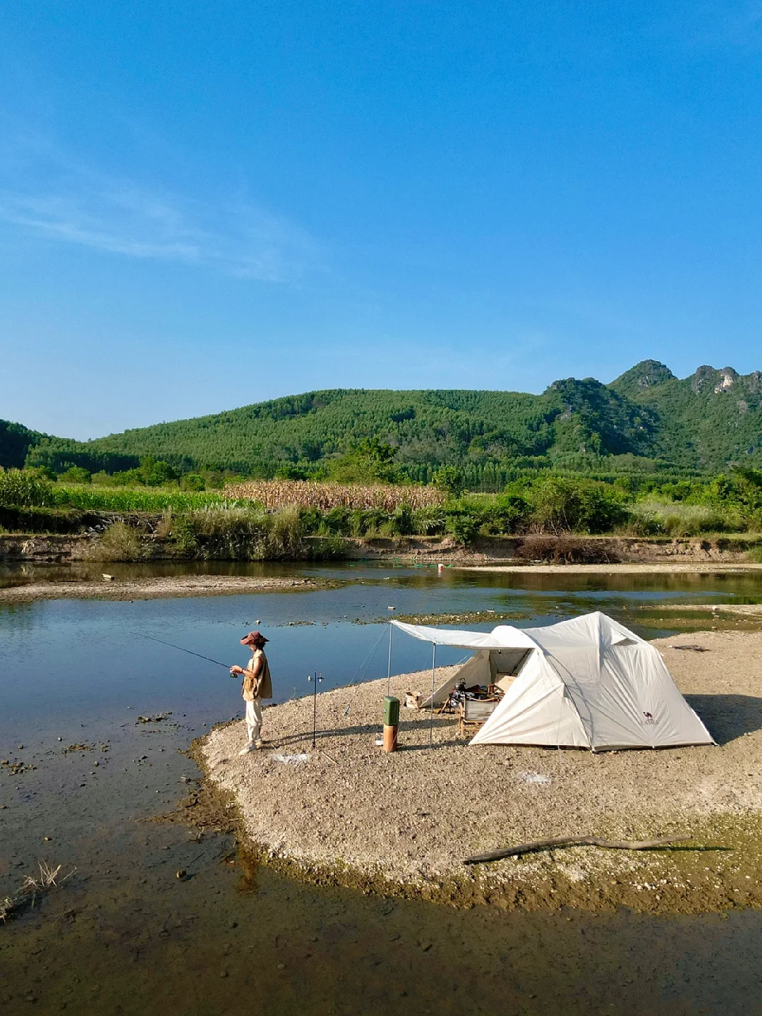 4️⃣上游是采石场,下游是非常宽阔的河滩,听说采石场把河面填平了很多,非常适合露营