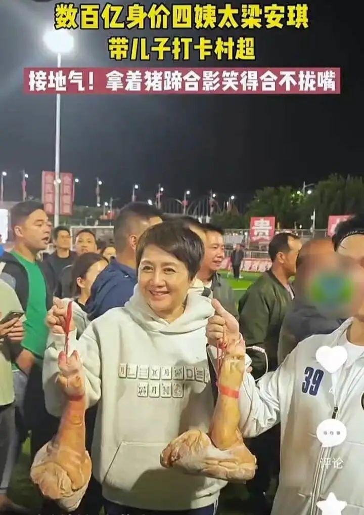 “村超”火过国足?赌王儿子携梁安琪出征!范志毅、黄日华都来了 在贵州省榕江县,每个乡村都有自己的足球队,足球文化非常浓厚。 当地的“村超”赛事也非常受欢迎,吸引了来自全国各地的足球爱好者。 赌王四太梁安琪也跟随儿子何猷亨来到贵州,并在绿茵场上合影留念。 梁安琪非常开心,与大猪蹄子合影时,表现出了接地气的一面。 贵州“村超”的火爆,不仅因为足球,还因为当地的美食。 人们在观看比赛或比赛结束后,都会去品尝当地的特色美食。