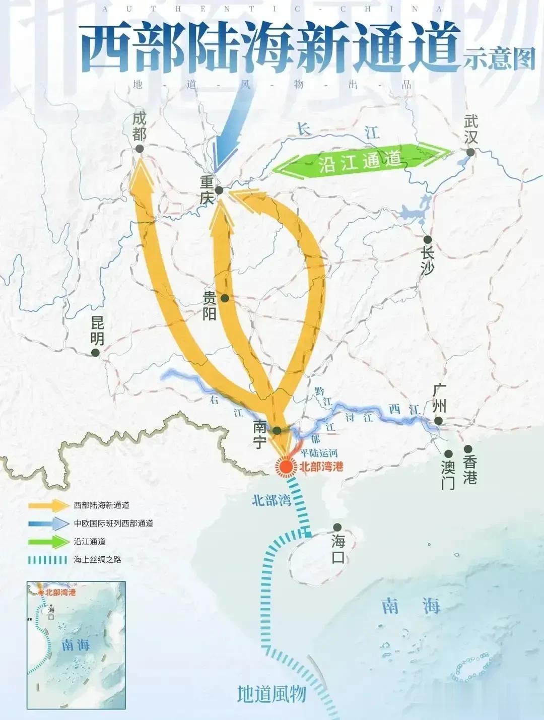 【“新西部陆海新通道”出海港口】:目前整个“西部陆海新通道”仅只有平陆运河的出海口,那么未来将开辟打通北流江与南流江的“南北运河”以及广西与广东的“桂粤运河”,实现三大出海口战略构想。