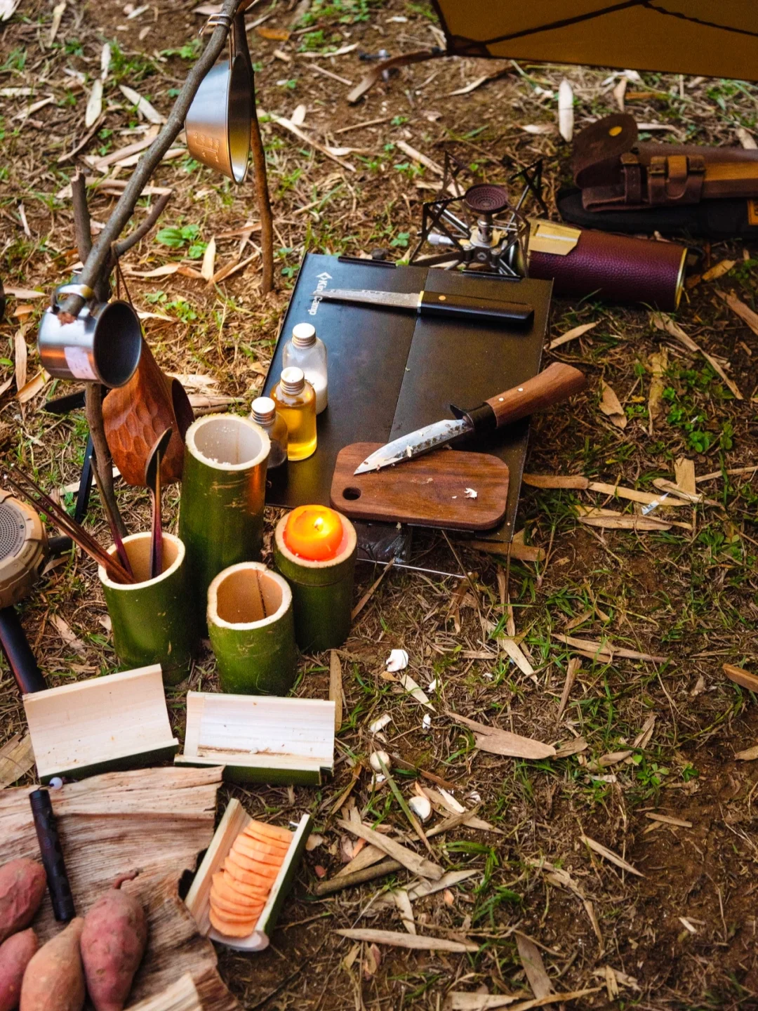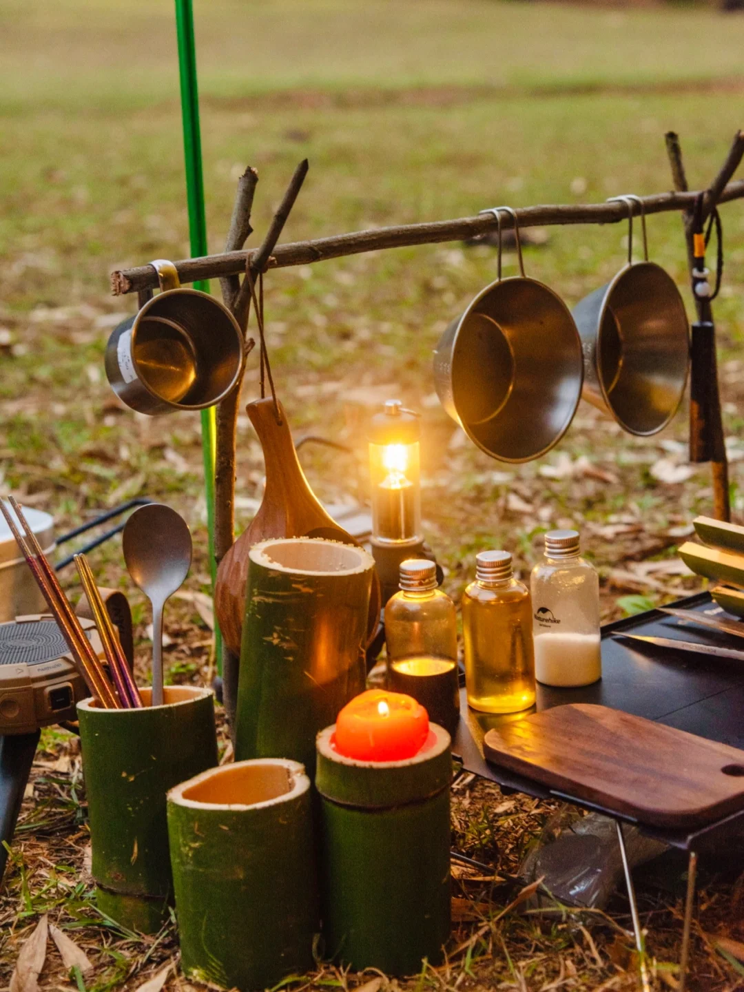 自制:屁垫、竹碗、炊具架、筷筒、烛台、竹壳篮子…