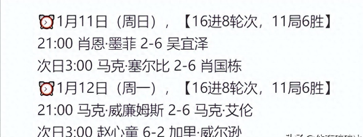 剩余四组对决同样悬念拉满:今晚九点斯佳辉将挑战世界第二凯伦·威尔逊,凌晨三点希金斯与霍金斯展开“75三杰”内战,明晚九点丁俊晖压轴登场对阵世界第一特鲁姆普,罗伯逊则将迎战韦克林。值得一提的是,幸存的球员中多数未曾染指大师赛冠军,今年极有可能诞生一位新科冠军,让赛事悬念再升一级。赛前训练场上,赵心童被问及是否想复仇希金斯时,笑着回应“每一场比赛都是新的开始”,而肖国栋则调侃“内战也好,省得惦记对手,专心打自己的球就行”。