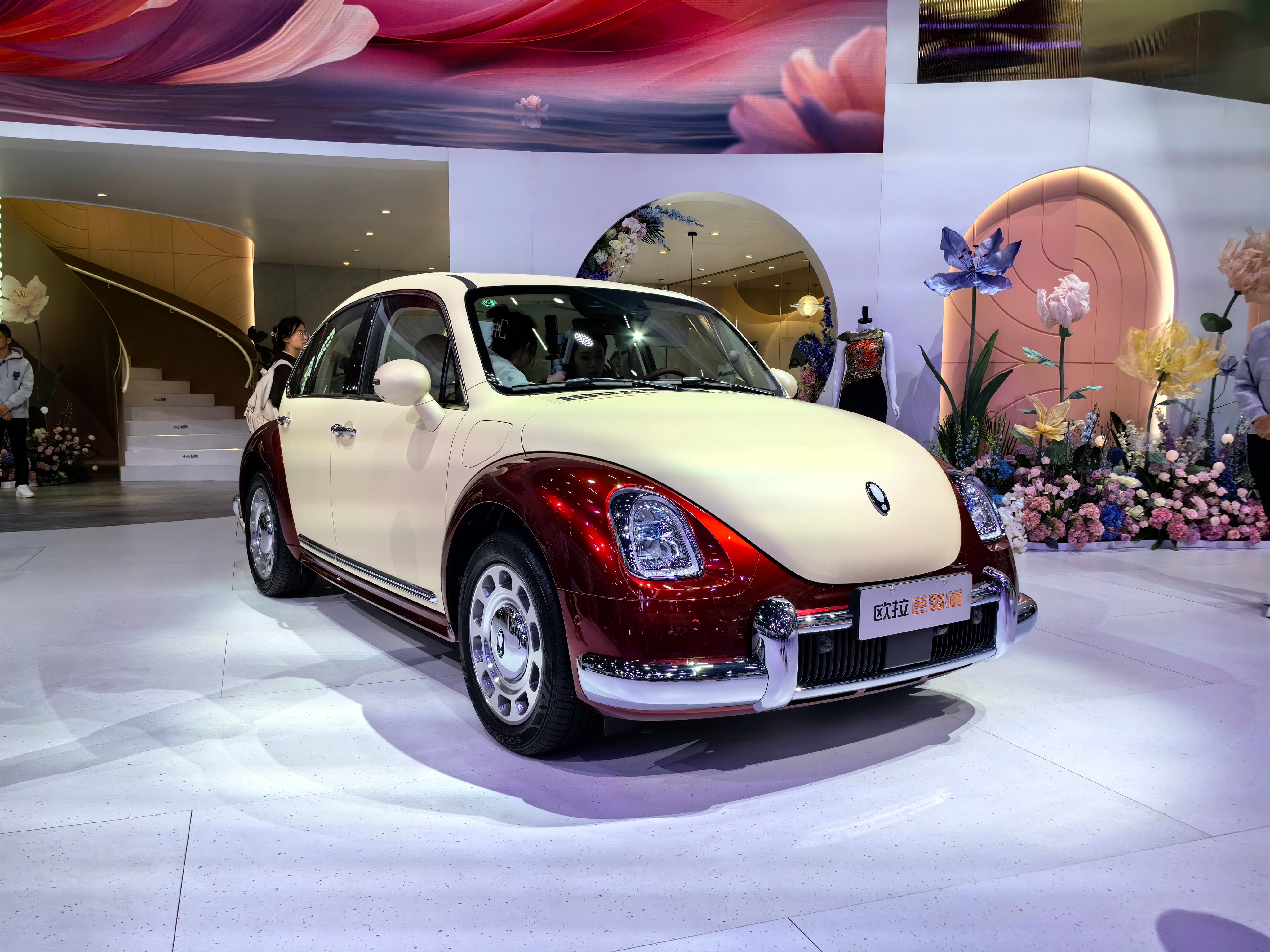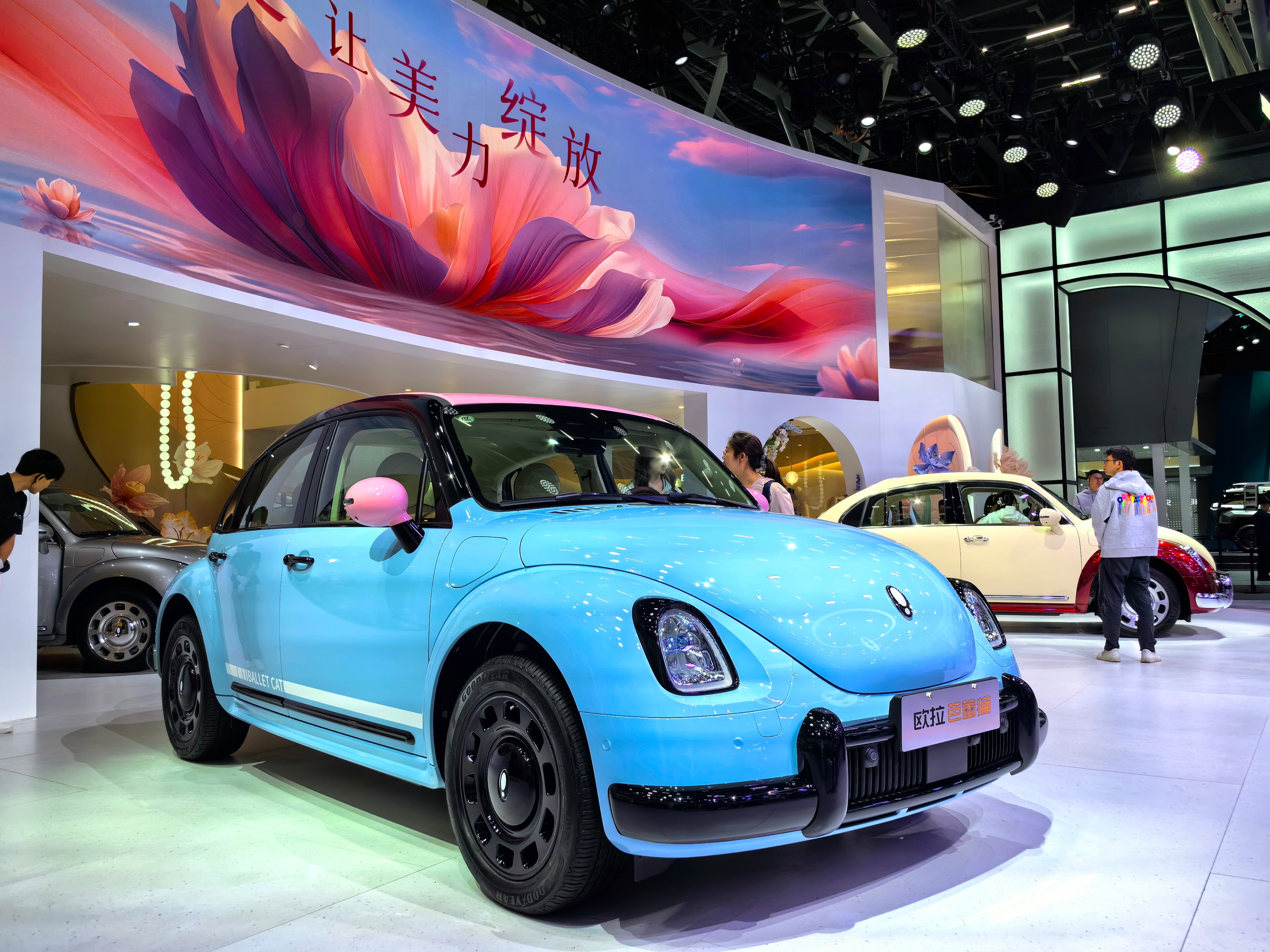 另外就是欧拉,应该是车展上为数不多完全为女性定制的展台了,也为女性倾力打造的品牌,在长城系当中也是一个比较特殊的存在,独立细分赛道,专注女性用车。