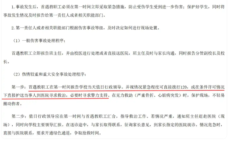 一位小学班主任,已经有10多年教龄,但是发生的一件事情,令她反思之后迷茫了很久,她在社交平台留言称:前些日子,班里一个孩子课间玩耍的时候,不知道怎么就摔了一跤,大概率是自己在楼梯踩空,膝盖被台阶擦破了皮,有一块擦伤和淤青。按程序就先带他到校医务室里先进行处理,然后打电话通知了家长。家长倒是迅速到了学校,可是第一句话就直接让人寒心,这个家长说你为什么不第一时间打电话给我?要是出事了,骨折了你们负得了责任吗。
