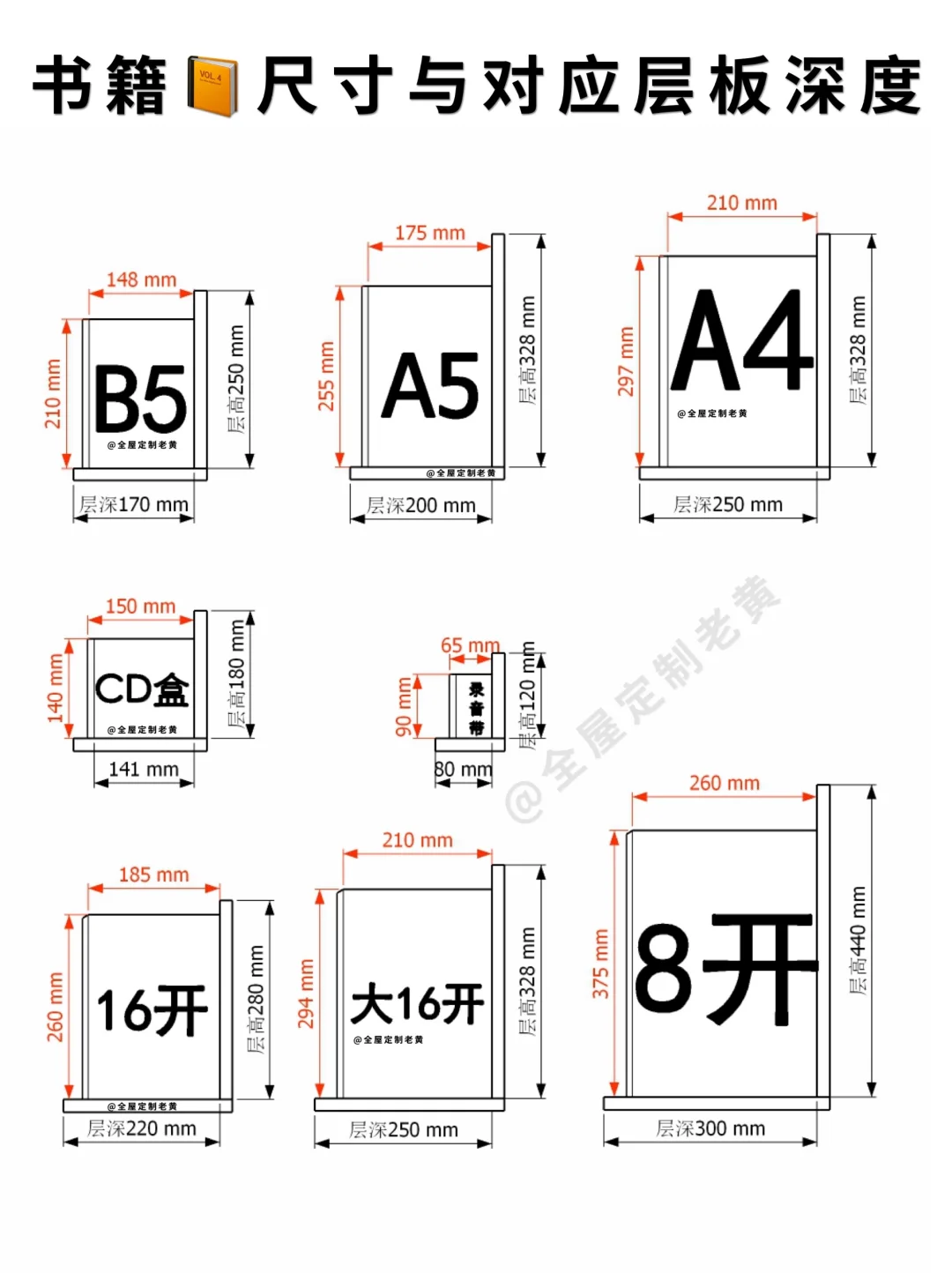 设计书柜的时候怎能不了解书籍的尺寸呢☝️