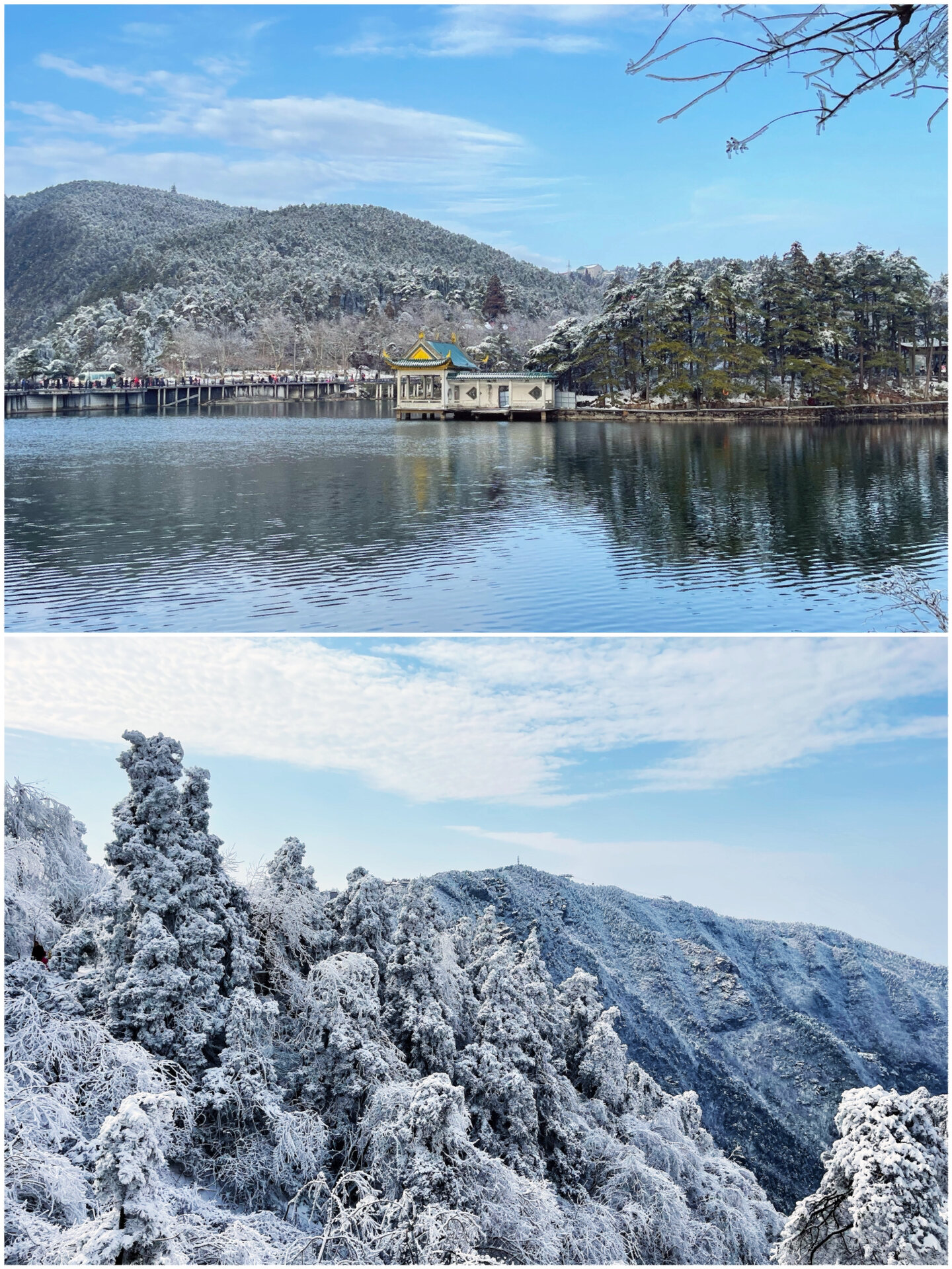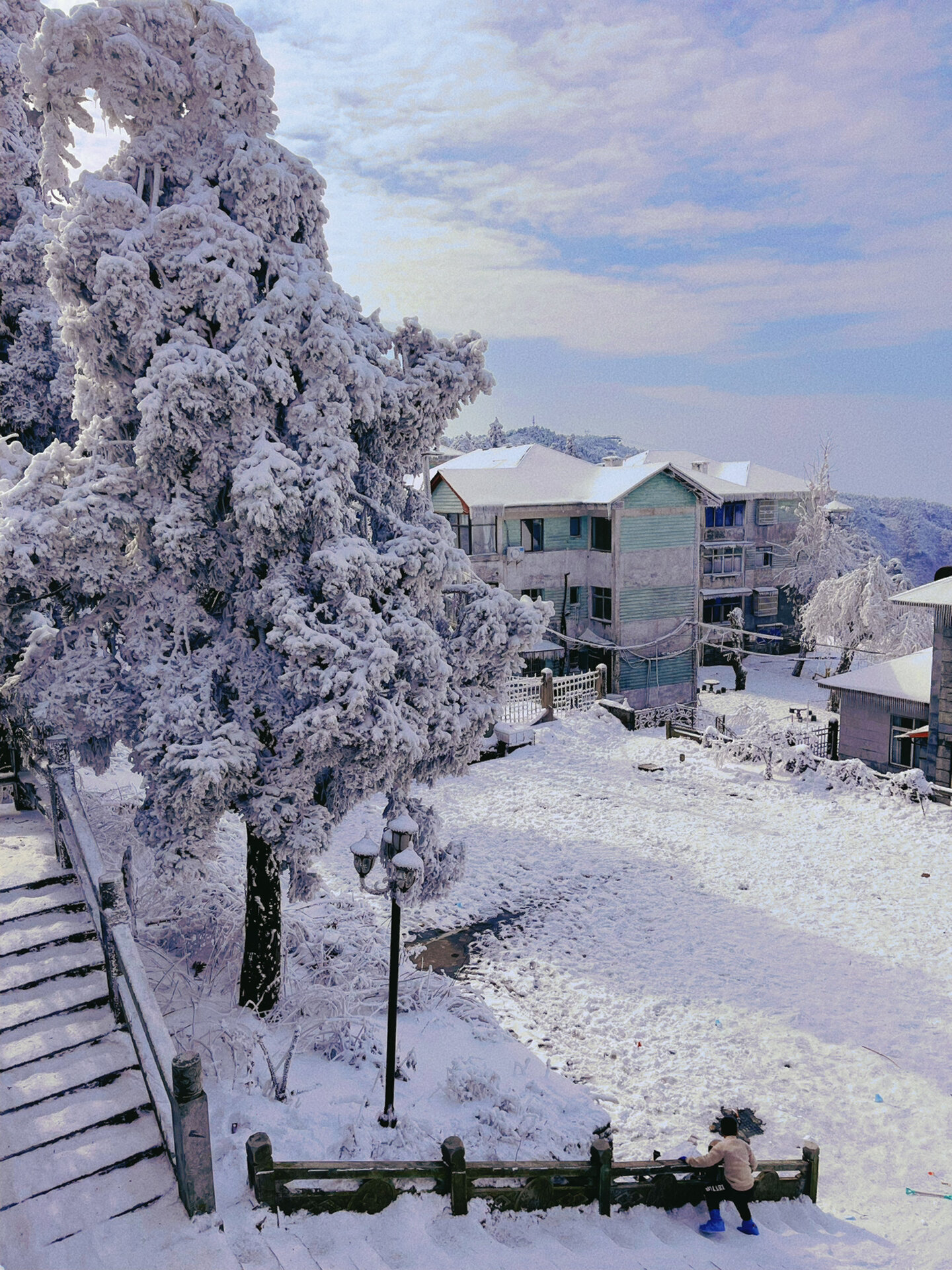 冬日庐山的雪绝对不输给北方,庐山的雪是那种厚厚的,从屋顶到山间的松枝都是白茫茫的一片,还有雾凇和冰川,景色比想象中好看太多!