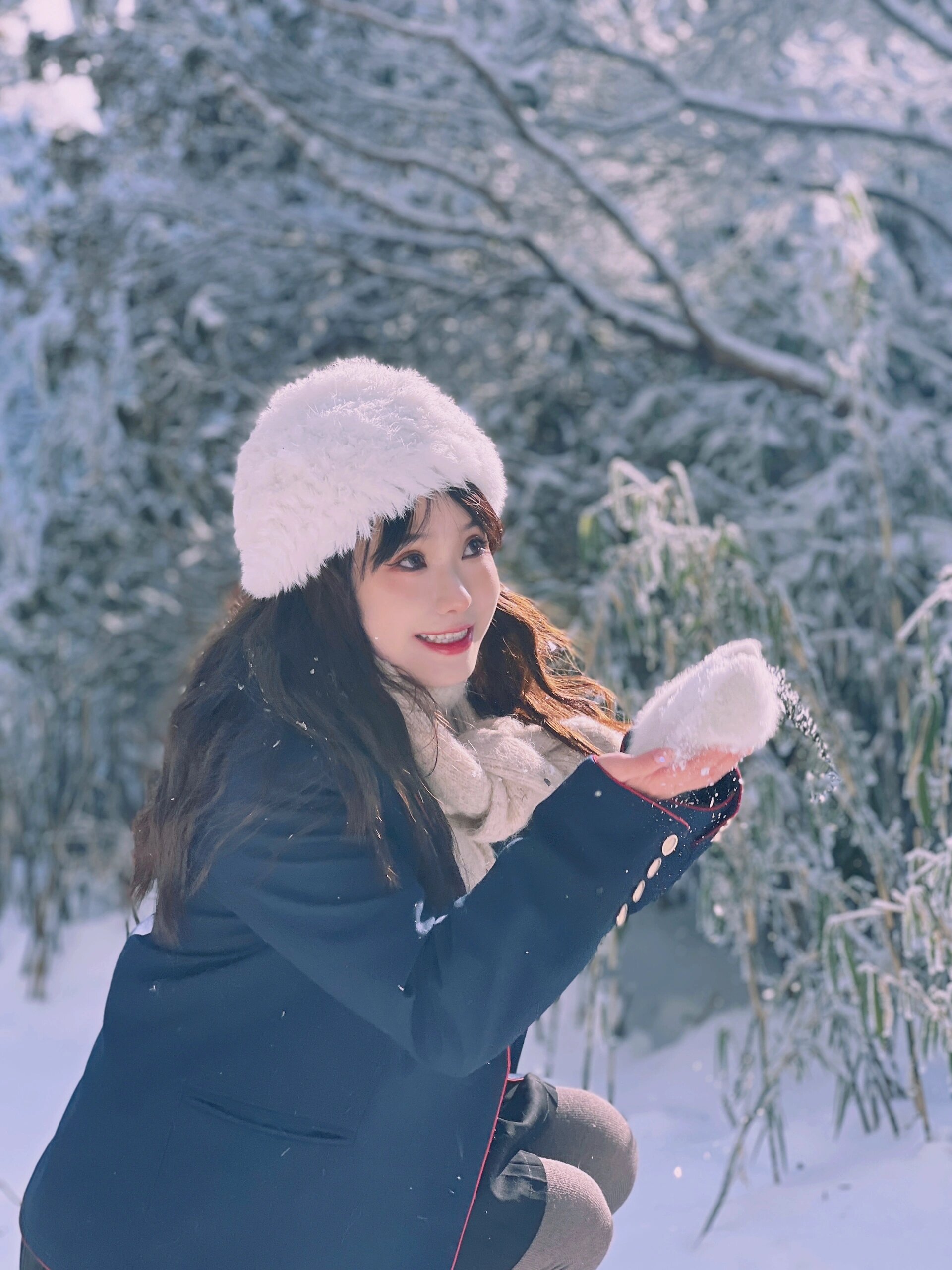 4、帽子手套围巾墨镜记得带,带点绒绒的拍照更有氛围感