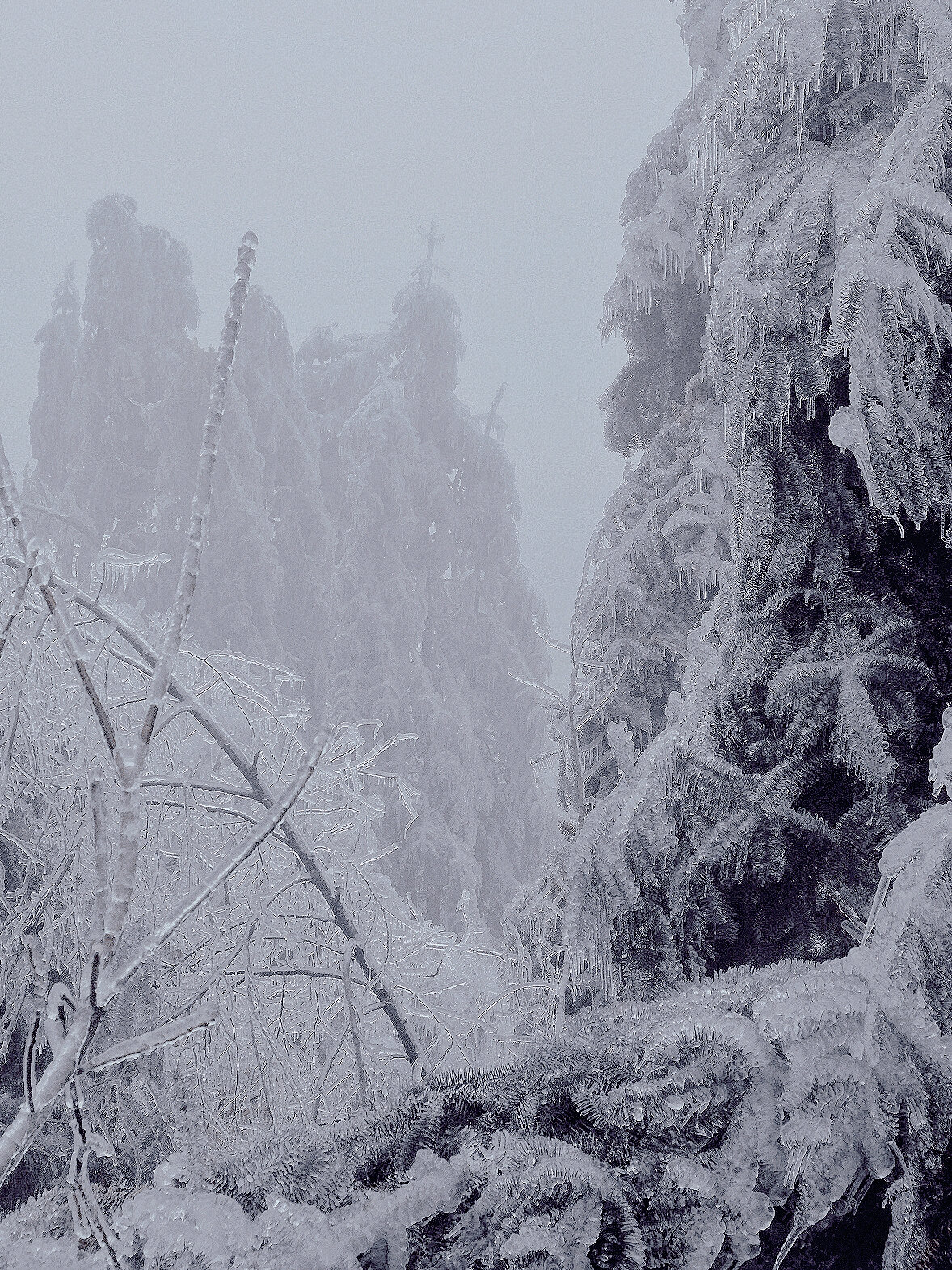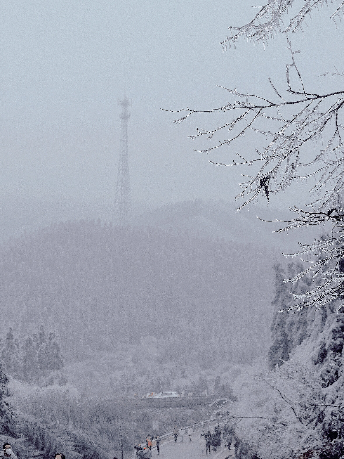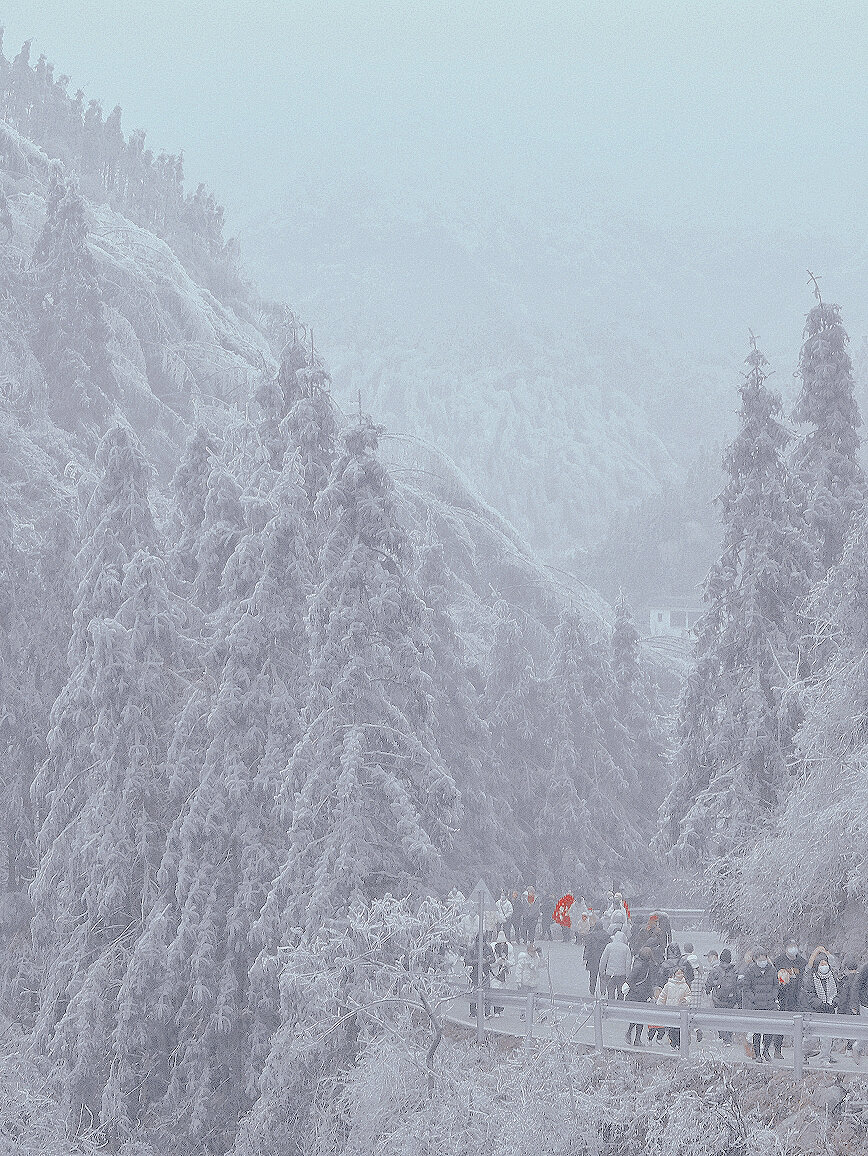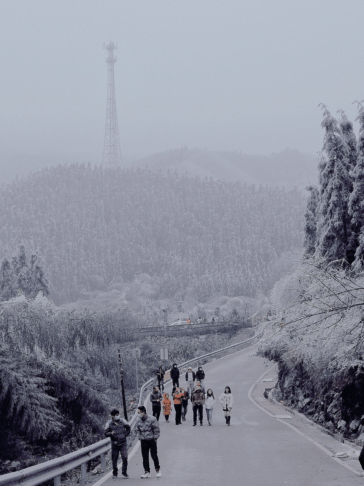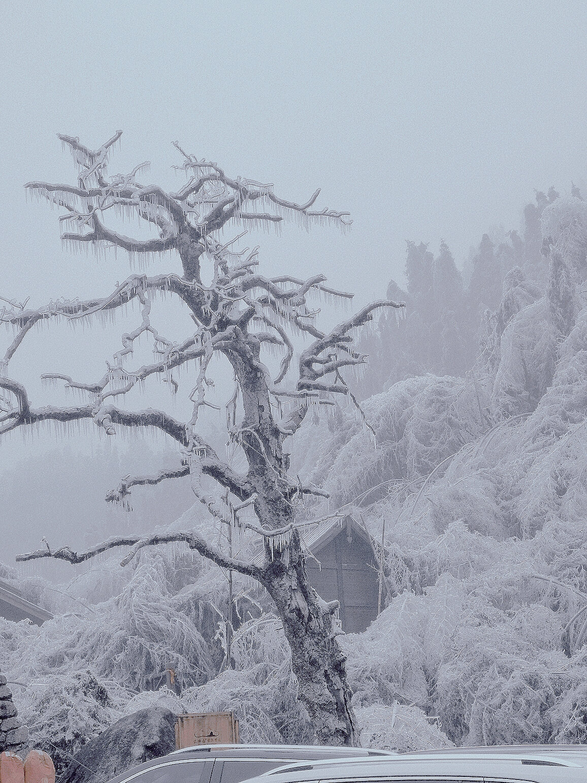 ⚪️近来气温都比较低,山上都有冰挂🧊,建议可以早点过来排队进入景区,现在路上冰冻观光车没办法到达山顶,所以只能徒步上去,景区门口到达山顶需要徒步3km
