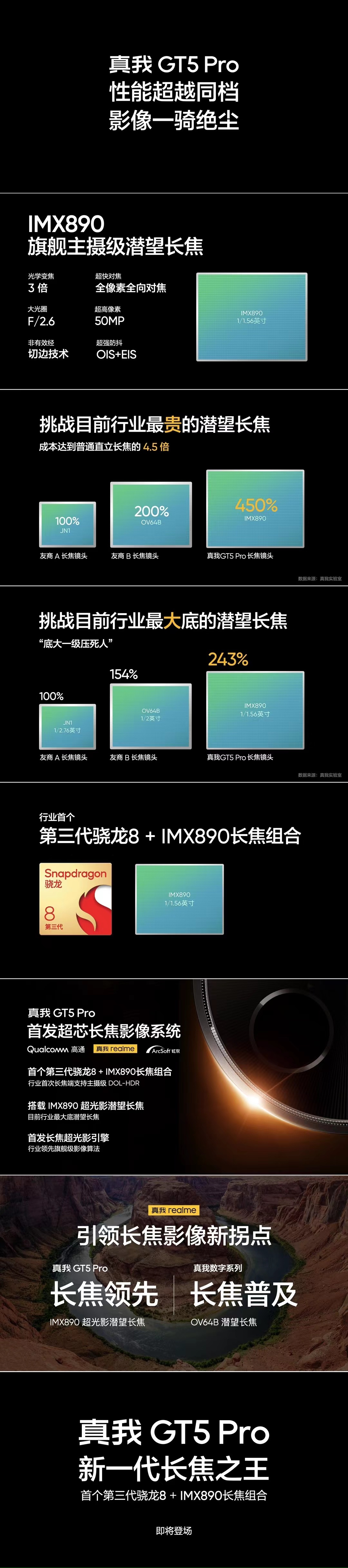 真我GT5 Pro发布在即,第三代骁龙8+IMX890潜望式长焦组合,周五预计上