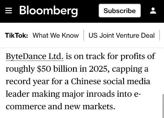 一边是尸横遍野的“大逃杀”,另一边却是高歌猛进的逆势增长,尤其是字节跳动。据彭博社报道,其2025年利润有望突破500亿美元,而金融时报披露字节跳动2026年仅AI芯片采购预算就高达850亿元人民币。