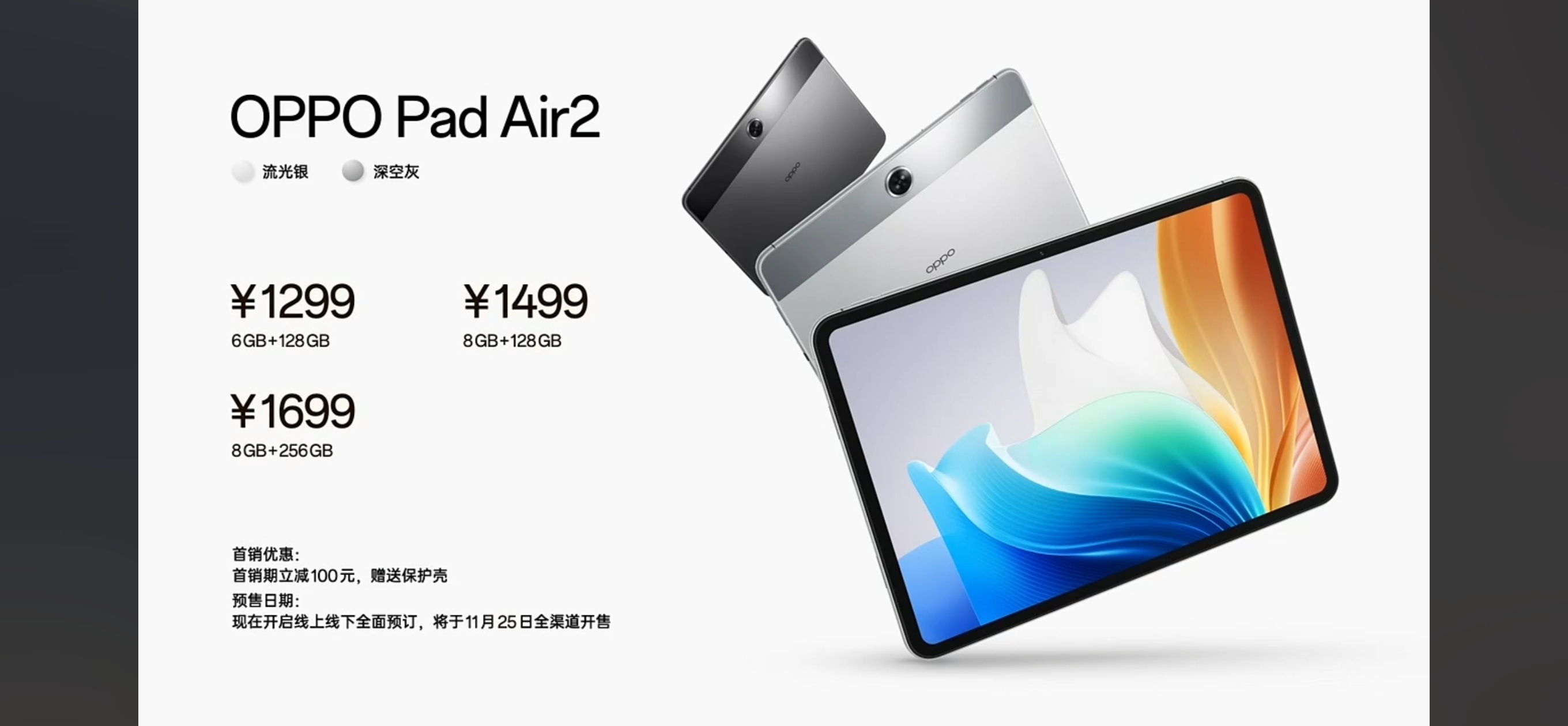 另外还有一款平板电脑,OPPO Pad Air2, 1299起。