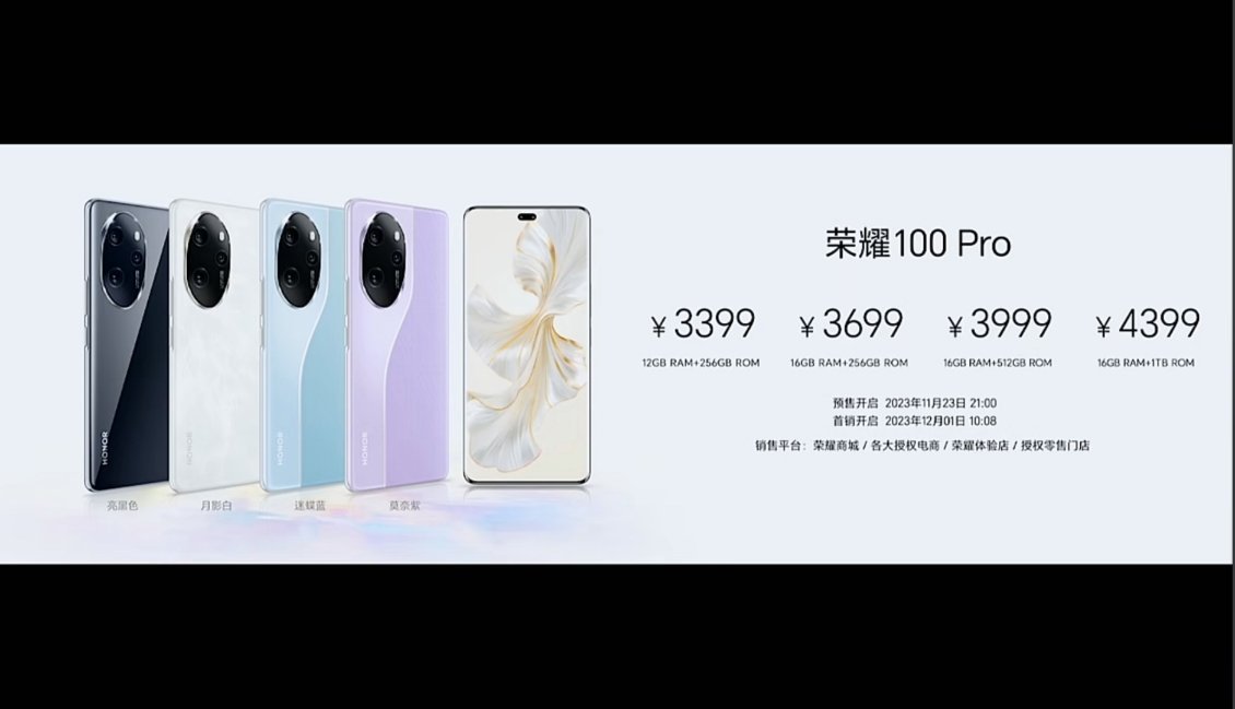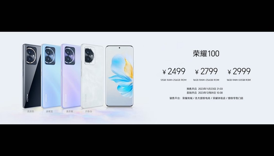 荣耀100系列价格公布:标准版搭载骁龙7 Gen3-2499起荣耀100 Pro