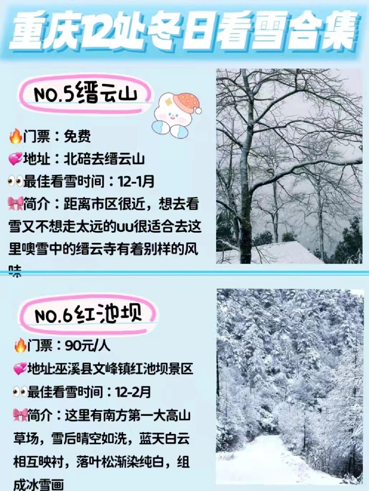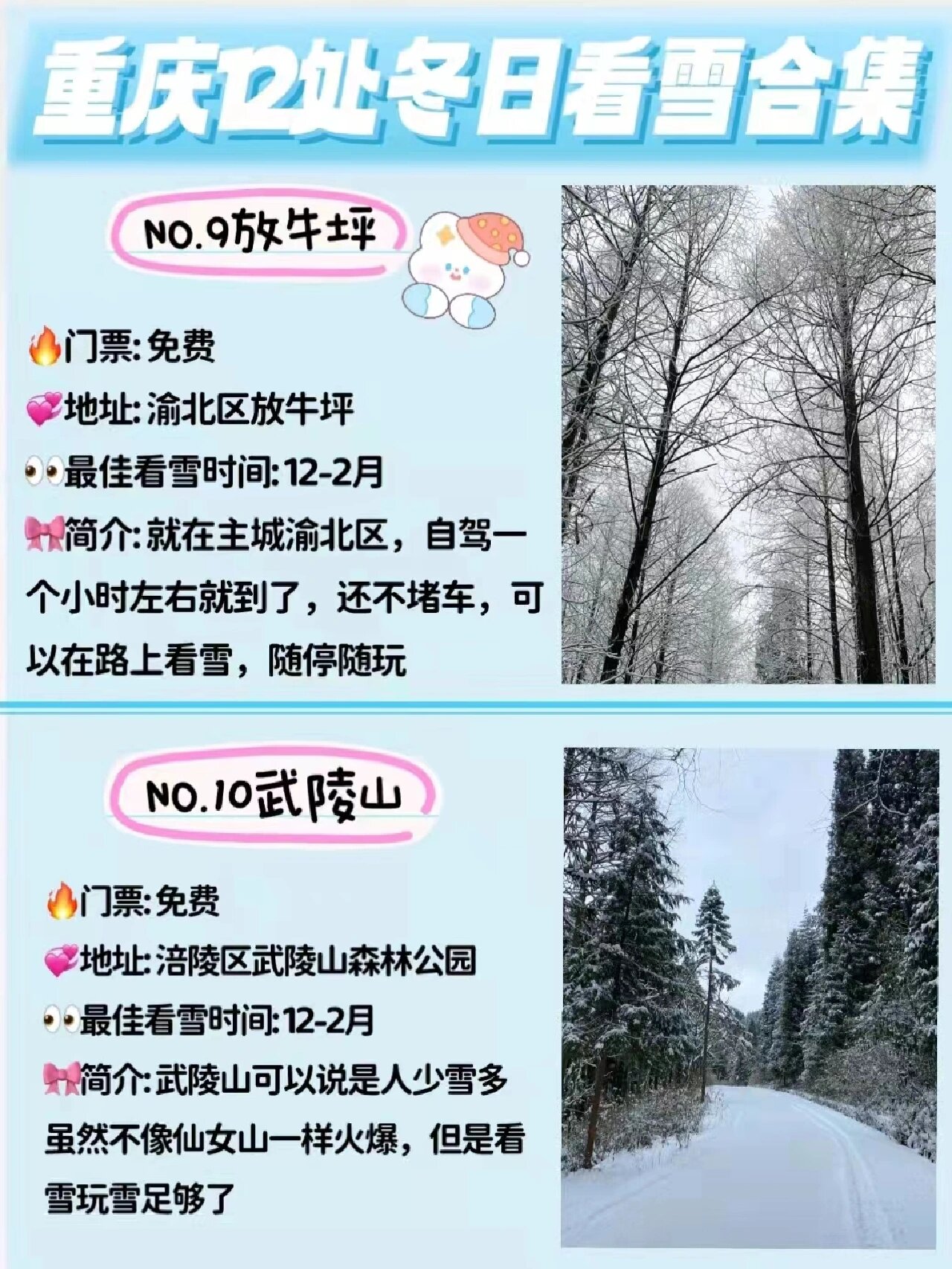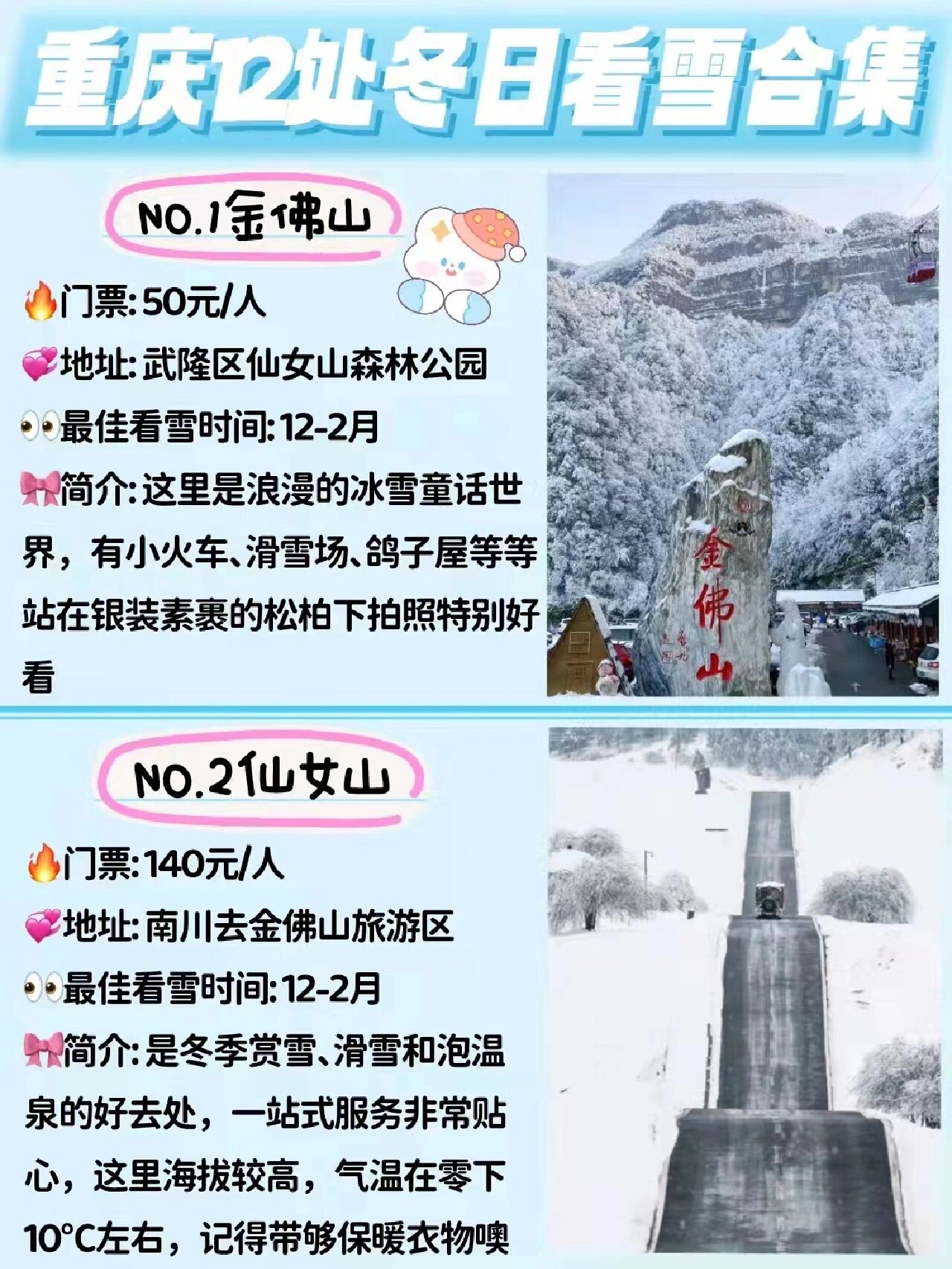 重庆的朋友们是不是也很羡慕北方的鹅毛大雪啊🎉不用担心🎀我们在山城重庆也能实现!!这里有12处看雪好去处,快快来解锁吧~