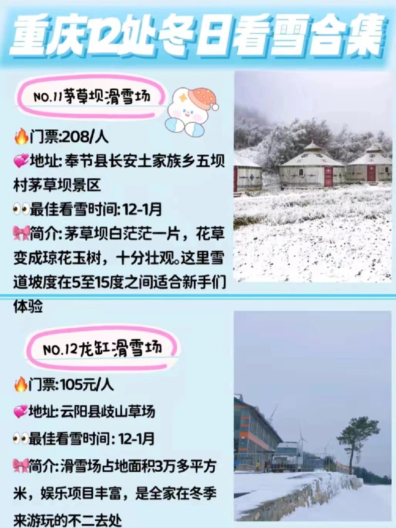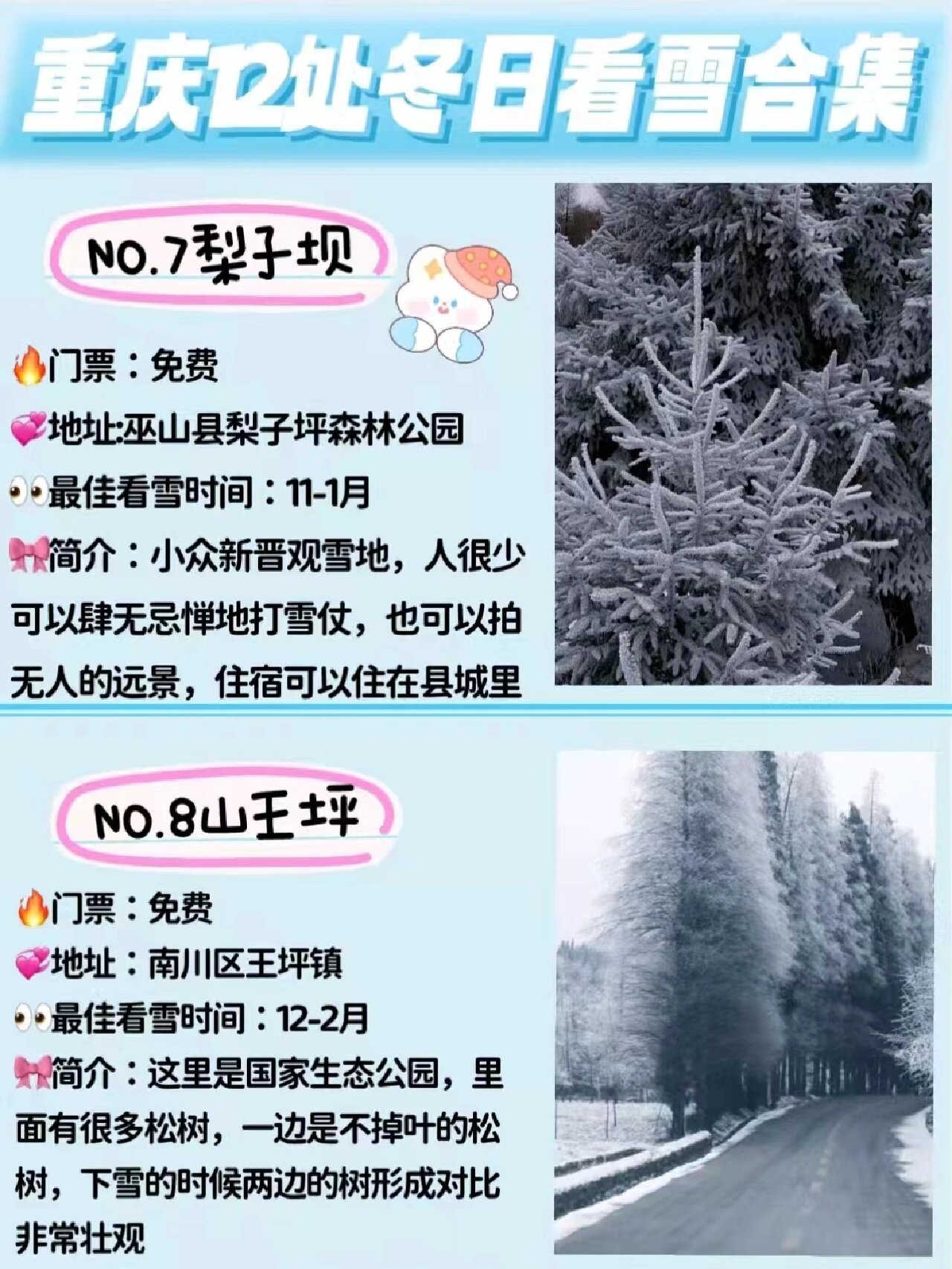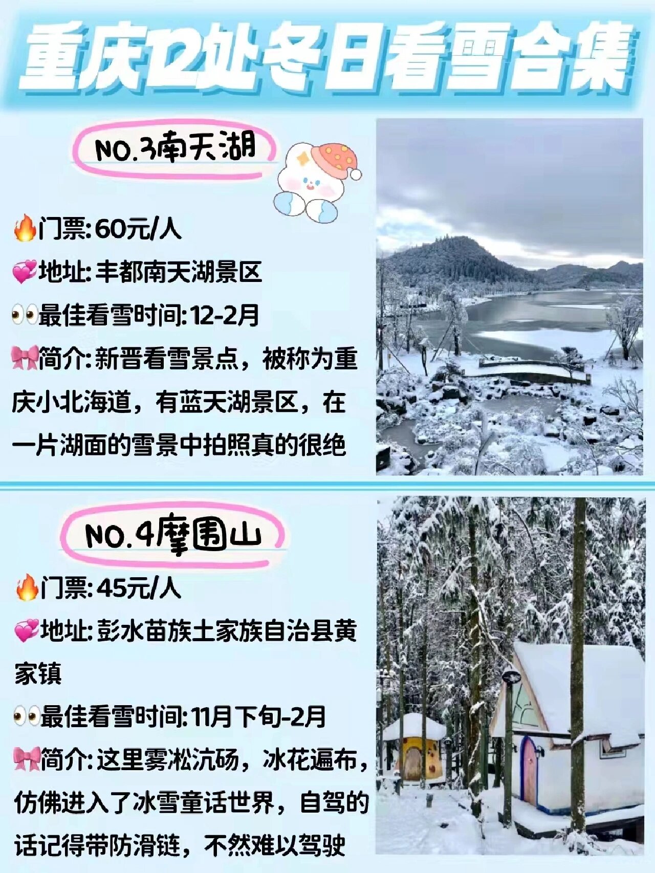 重庆的朋友们是不是也很羡慕北方的鹅毛大雪啊🎉不用担心🎀我们在山城重庆也能实现!!这里有12处看雪好去处,快快来解锁吧~