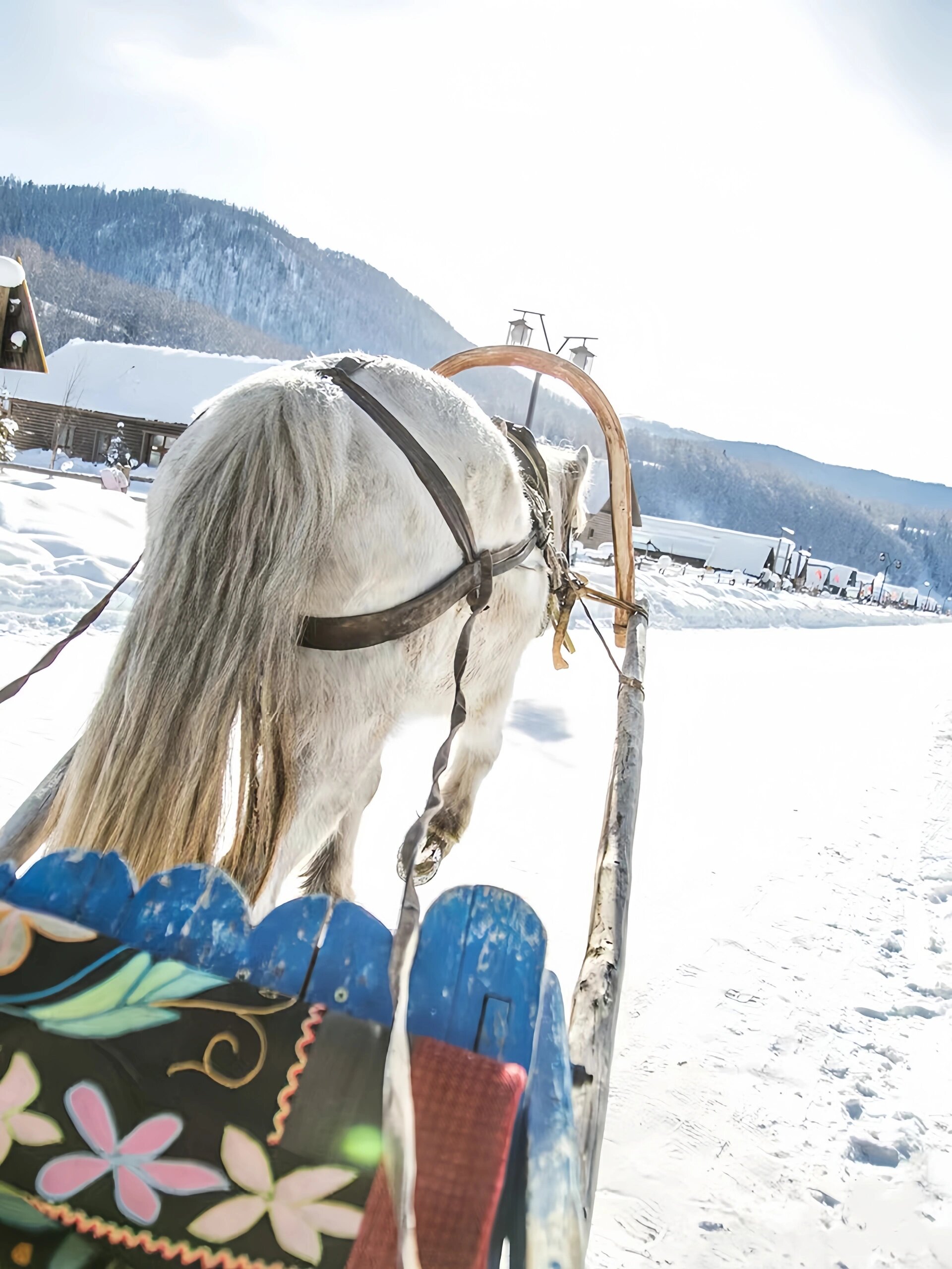 早晨登禾木观景台,俯瞰清晨下白雪皑皑的古村落。然后上午可以去禾木滑雪度假村体验滑雪👍