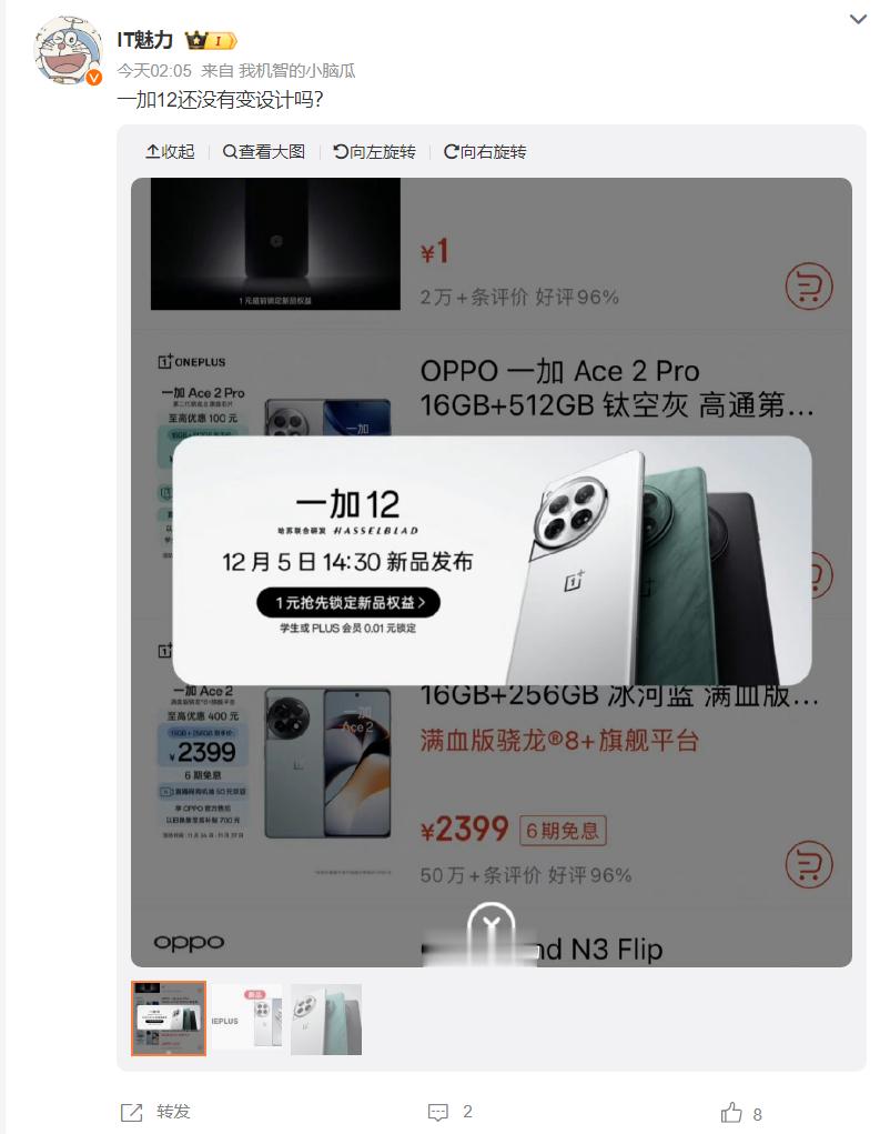 【延续前代设计,目标超越所有骁龙8 Gen3一加12系列正式官宣】12月4日举行