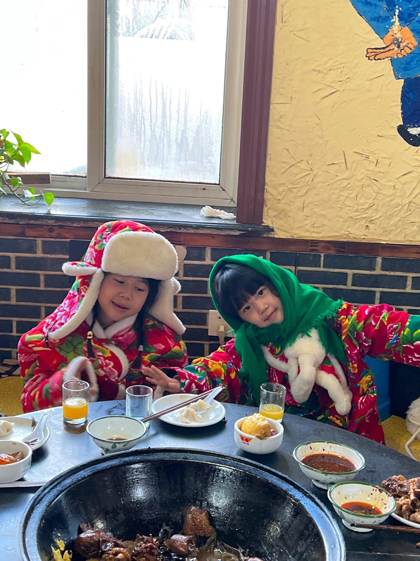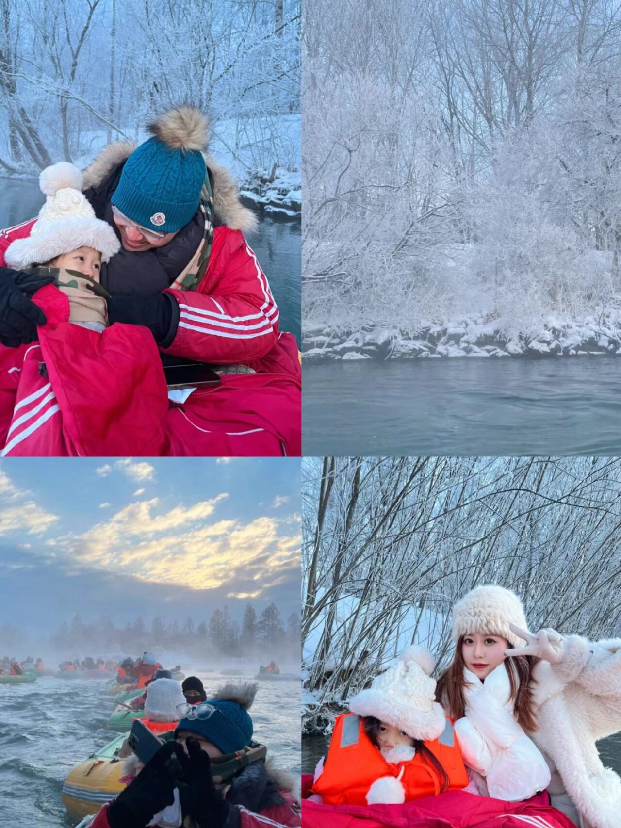 我们2大2小,西坡没有大船,要分开。所以还是去北坡的雾凇漂流~漂流一个小时左右,美照也没拍,记得拿大衣😭很幸运看到了雾凇~两个女儿冷到只露出两只眼睛在外面哈哈哈哈😂真的好笑~ 上岸了记得来一杯姜茶
