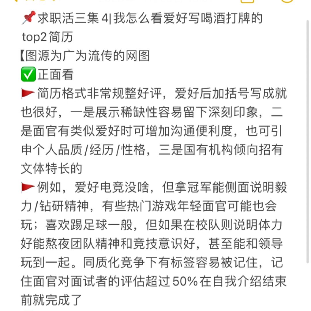 🚩我很理解爱好放前面这么写是为增加竞争力和独特性,想直截了当地表达自己的社会化程度即看透了机构的要求也能接受很多高学历者所不能接受的。但不能过油不及,机构并不想被所谓看透,把默契摆上台可能会被认为耍小聪明,过于功利不好带